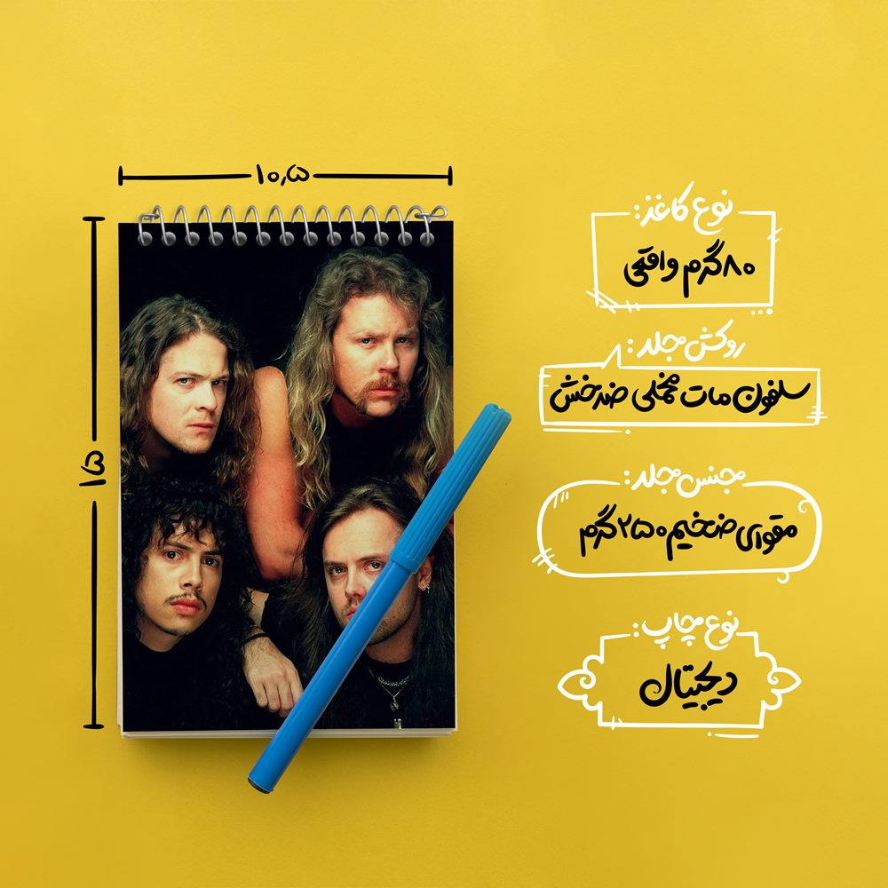 برند خندالو در زمینه تولید انواع دفاتر فانتزی و تحصیلی فعالیت میکند که به دلیل جذابیت ظاهری و طرح های متنوع طرفداران زیادی دارد. دفتر یادداشت خندالو طرح گروه موسیقی متالیکا Metallica محصولی مناسب برای همه عاشقان لوازم التحریر است و همچنین همه کسانی که بنا به موقعیت تحصیل یا شغلشان با دفتر و نوشت افزار زیاد سر و کار دارند. در تولید دفتر یادداشت خندالو طرح گروه موسیقی متالیکا Metallica از نوع صحافی فنر مارپیچ استفاده شده که در این نوع صحافی برگهها به راحتی چرخیده و یا بیرون آورده می شوند. دفتر های خندالو دارای جلد انعطاف پذیر از جنس مقوای گلاسه 250 گرم با روکش سلفون مات مخملی است که به شما امکان میدهد از دفتر خود بدون اینکه نگرانی از شکستن یا خراب شدن جلد را داشته باشید استفاده کنید و همچنین در این دفاتر از کاغذ 80 گرم با کیفیت استفاده شده که باعث میشود هنگام نوشتن به خوبی جوهر قلم بر روی صفحه نشسته و از خط خوردگیها جلوگیری کند. دفتر یادداشت خندالو با جنس و دوام مناسب، برگه های کاملاً سفید و خطوط طوسی دقیق را داراست که انسان را به نوشتن منظم و زیبا ترغیب میکند. طراحی کاملاً مناسب این دفاتر، به همراه کیفیت بالا، از آن یک محصول مورد علاقه و قابل اعتماد برای همه مقاطع تحصیلی میسازد. دفتر یادداشت خندالو طرح گروه موسیقی متالیکا Metallica انتخابی هوشمندانه و مناسب برای افرادی است که به دنبال دفتری با کیفیت و کاربرد عالی هستند. این دفتر، همراه خوبی برای شما در تمام مراحل تحصیل و کار خواهد بود و تجربهای لذتبخش از نوشتن و آموختن را به شما هدیه میدهد.