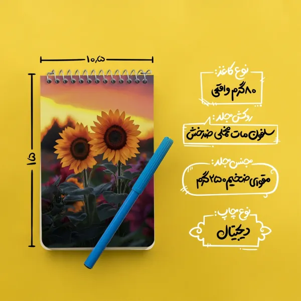 برند خندالو در زمینه تولید انواع دفاتر فانتزی و تحصیلی فعالیت میکند که به دلیل جذابیت ظاهری و طرح های متنوع طرفداران زیادی دارد. دفتر یادداشت خندالو طرح گل آفتابگردان محصولی مناسب برای همه عاشقان لوازم التحریر است و همچنین همه کسانی که بنا به موقعیت تحصیل یا شغلشان با دفتر و نوشت افزار زیاد سر و کار دارند. در تولید دفتر یادداشت خندالو طرح گل آفتابگردان از نوع صحافی فنر مارپیچ استفاده شده که در این نوع صحافی برگه‌ها به راحتی چرخیده و یا بیرون آورده می شوند.