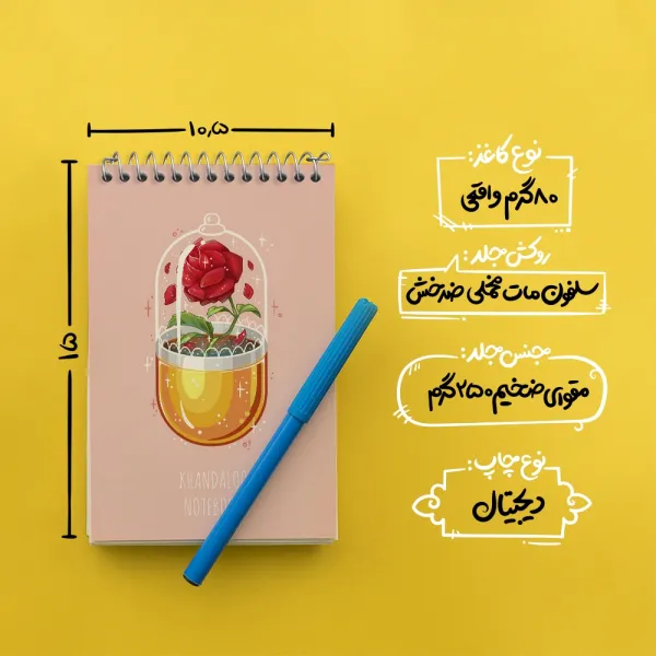 برند خندالو در زمینه تولید انواع دفاتر فانتزی و تحصیلی فعالیت میکند که به دلیل جذابیت ظاهری و طرح های متنوع طرفداران زیادی دارد. دفتر یادداشت خندالو طرح گل رز محصولی مناسب برای همه عاشقان لوازم التحریر است و همچنین همه کسانی که بنا به موقعیت تحصیل یا شغلشان با دفتر و نوشت افزار زیاد سر و کار دارند. در تولید دفتر یادداشت خندالو طرح گل رز از نوع صحافی فنر مارپیچ استفاده شده که در این نوع صحافی برگه‌ها به راحتی چرخیده و یا بیرون آورده می شوند.