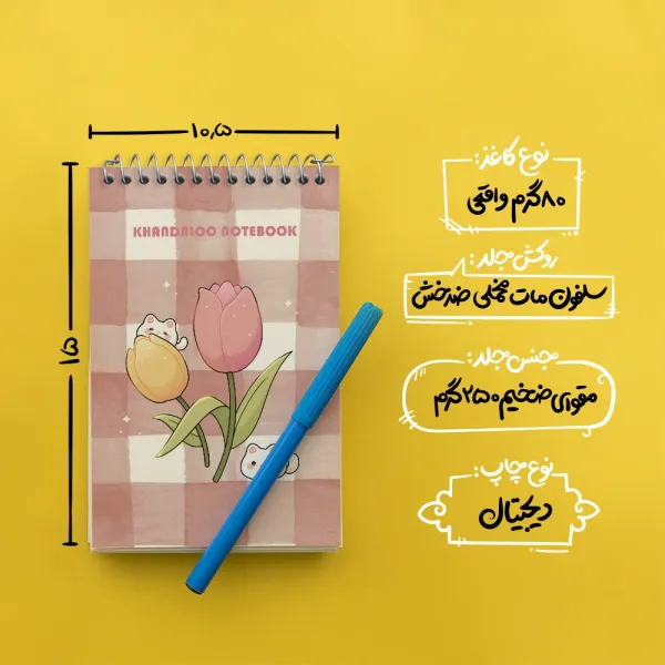 برند خندالو در زمینه تولید انواع دفاتر فانتزی و تحصیلی فعالیت میکند که به دلیل جذابیت ظاهری و طرح های متنوع طرفداران زیادی دارد. دفتر یادداشت خندالو طرح گل و گربه های بامزه محصولی مناسب برای همه عاشقان لوازم التحریر است و همچنین همه کسانی که بنا به موقعیت تحصیل یا شغلشان با دفتر و نوشت افزار زیاد سر و کار دارند. در تولید دفتر یادداشت خندالو طرح گل و گربه های بامزه از نوع صحافی فنر مارپیچ استفاده شده که در این نوع صحافی برگهها به راحتی چرخیده و یا بیرون آورده می شوند. دفتر های خندالو دارای جلد انعطاف پذیر از جنس مقوای گلاسه 250 گرم با روکش سلفون مات مخملی است که به شما امکان میدهد از دفتر خود بدون اینکه نگرانی از شکستن یا خراب شدن جلد را داشته باشید استفاده کنید و همچنین در این دفاتر از کاغذ 80 گرم با کیفیت استفاده شده که باعث میشود هنگام نوشتن به خوبی جوهر قلم بر روی صفحه نشسته و از خط خوردگیها جلوگیری کند. دفتر یادداشت خندالو با جنس و دوام مناسب، برگه های کاملاً سفید و خطوط طوسی دقیق را داراست که انسان را به نوشتن منظم و زیبا ترغیب میکند. طراحی کاملاً مناسب این دفاتر، به همراه کیفیت بالا، از آن یک محصول مورد علاقه و قابل اعتماد برای همه مقاطع تحصیلی میسازد. دفتر یادداشت خندالو طرح گل و گربه های بامزه انتخابی هوشمندانه و مناسب برای افرادی است که به دنبال دفتری با کیفیت و کاربرد عالی هستند. این دفتر، همراه خوبی برای شما در تمام مراحل تحصیل و کار خواهد بود و تجربهای لذتبخش از نوشتن و آموختن را به شما هدیه میدهد.