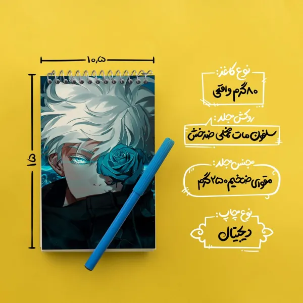 برند خندالو در زمینه تولید انواع دفاتر فانتزی و تحصیلی فعالیت میکند که به دلیل جذابیت ظاهری و طرح های متنوع طرفداران زیادی دارد. دفتر یادداشت خندالو طرح گوجو ساتورو انیمه جوجوتسو کایزن محصولی مناسب برای همه عاشقان لوازم التحریر است و همچنین همه کسانی که بنا به موقعیت تحصیل یا شغلشان با دفتر و نوشت افزار زیاد سر و کار دارند. در تولید دفتر یادداشت خندالو طرح گوجو ساتورو انیمه جوجوتسو کایزن از نوع صحافی فنر مارپیچ استفاده شده که در این نوع صحافی برگهها به راحتی چرخیده و یا بیرون آورده می شوند. دفتر های خندالو دارای جلد انعطاف پذیر از جنس مقوای گلاسه 250 گرم با روکش سلفون مات مخملی است که به شما امکان میدهد از دفتر خود بدون اینکه نگرانی از شکستن یا خراب شدن جلد را داشته باشید استفاده کنید و همچنین در این دفاتر از کاغذ 80 گرم با کیفیت استفاده شده که باعث میشود هنگام نوشتن به خوبی جوهر قلم بر روی صفحه نشسته و از خط خوردگیها جلوگیری کند. دفتر یادداشت خندالو با جنس و دوام مناسب، برگه های کاملاً سفید و خطوط طوسی دقیق را داراست که انسان را به نوشتن منظم و زیبا ترغیب میکند. طراحی کاملاً مناسب این دفاتر، به همراه کیفیت بالا، از آن یک محصول مورد علاقه و قابل اعتماد برای همه مقاطع تحصیلی میسازد. دفتر یادداشت خندالو طرح گوجو ساتورو انیمه جوجوتسو کایزن انتخابی هوشمندانه و مناسب برای افرادی است که به دنبال دفتری با کیفیت و کاربرد عالی هستند. این دفتر، همراه خوبی برای شما در تمام مراحل تحصیل و کار خواهد بود و تجربهای لذتبخش از نوشتن و آموختن را به شما هدیه میدهد.