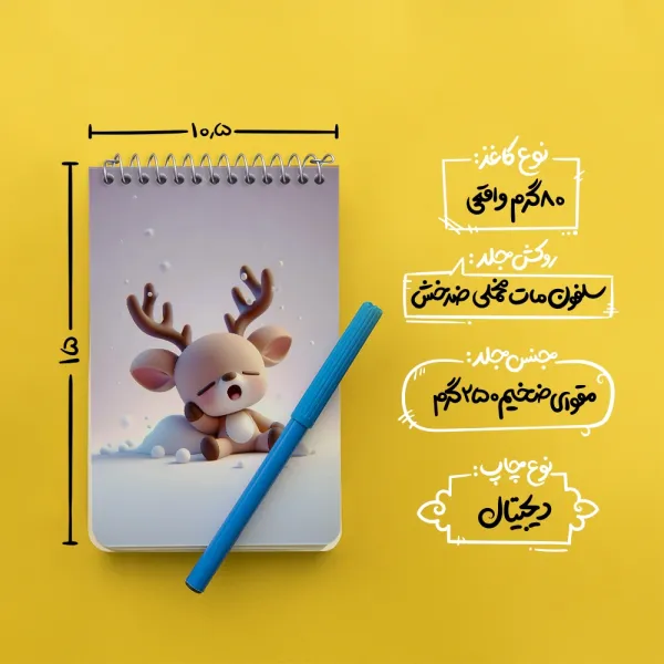برند خندالو در زمینه تولید انواع دفاتر فانتزی و تحصیلی فعالیت میکند که به دلیل جذابیت ظاهری و طرح های متنوع طرفداران زیادی دارد. دفتر یادداشت خندالو طرح گوزن خوابالو محصولی مناسب برای همه عاشقان لوازم التحریر است و همچنین همه کسانی که بنا به موقعیت تحصیل یا شغلشان با دفتر و نوشت افزار زیاد سر و کار دارند. در تولید دفتر یادداشت خندالو طرح گوزن خوابالو از نوع صحافی فنر مارپیچ استفاده شده که در این نوع صحافی برگهها به راحتی چرخیده و یا بیرون آورده می شوند. دفتر های خندالو دارای جلد انعطاف پذیر از جنس مقوای گلاسه 250 گرم با روکش سلفون مات مخملی است که به شما امکان میدهد از دفتر خود بدون اینکه نگرانی از شکستن یا خراب شدن جلد را داشته باشید استفاده کنید و همچنین در این دفاتر از کاغذ 80 گرم با کیفیت استفاده شده که باعث میشود هنگام نوشتن به خوبی جوهر قلم بر روی صفحه نشسته و از خط خوردگیها جلوگیری کند. دفتر یادداشت خندالو با جنس و دوام مناسب، برگه های کاملاً سفید و خطوط طوسی دقیق را داراست که انسان را به نوشتن منظم و زیبا ترغیب میکند. طراحی کاملاً مناسب این دفاتر، به همراه کیفیت بالا، از آن یک محصول مورد علاقه و قابل اعتماد برای همه مقاطع تحصیلی میسازد. دفتر یادداشت خندالو طرح گوزن خوابالو انتخابی هوشمندانه و مناسب برای افرادی است که به دنبال دفتری با کیفیت و کاربرد عالی هستند. این دفتر، همراه خوبی برای شما در تمام مراحل تحصیل و کار خواهد بود و تجربهای لذتبخش از نوشتن و آموختن را به شما هدیه میدهد.