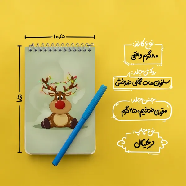 برند خندالو در زمینه تولید انواع دفاتر فانتزی و تحصیلی فعالیت میکند که به دلیل جذابیت ظاهری و طرح های متنوع طرفداران زیادی دارد. دفتر یادداشت خندالو طرح گوزن کریسمس محصولی مناسب برای همه عاشقان لوازم التحریر است و همچنین همه کسانی که بنا به موقعیت تحصیل یا شغلشان با دفتر و نوشت افزار زیاد سر و کار دارند. در تولید دفتر یادداشت خندالو طرح گوزن کریسمس از نوع صحافی فنر مارپیچ استفاده شده که در این نوع صحافی برگه‌ها به راحتی چرخیده و یا بیرون آورده می شوند.