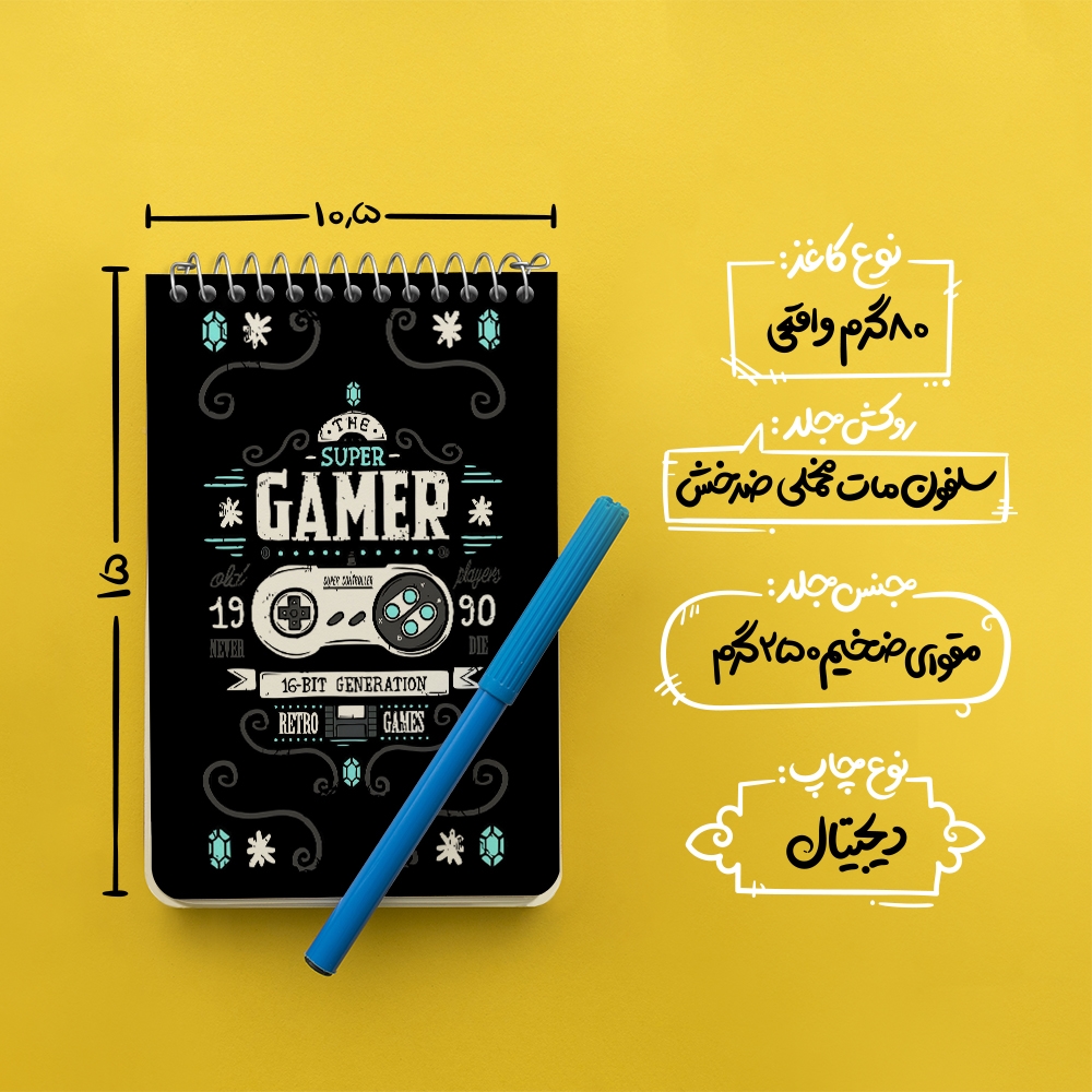 برند خندالو در زمینه تولید انواع دفاتر فانتزی و تحصیلی فعالیت میکند که به دلیل جذابیت ظاهری و طرح های متنوع طرفداران زیادی دارد. دفتر یادداشت خندالو طرح گیمر (Gamer) محصولی مناسب برای همه عاشقان لوازم التحریر است و همچنین همه کسانی که بنا به موقعیت تحصیل یا شغلشان با دفتر و نوشت افزار زیاد سر و کار دارند. در تولید دفتر یادداشت خندالو طرح گیمر (Gamer) از نوع صحافی فنر مارپیچ استفاده شده که در این نوع صحافی برگه‌ها به راحتی چرخیده و یا بیرون آورده می شوند.