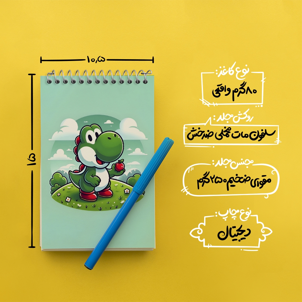 برند خندالو در زمینه تولید انواع دفاتر فانتزی و تحصیلی فعالیت میکند که به دلیل جذابیت ظاهری و طرح های متنوع طرفداران زیادی دارد. دفتر یادداشت خندالو طرح یوشی (Yoshi) محصولی مناسب برای همه عاشقان لوازم التحریر است و همچنین همه کسانی که بنا به موقعیت تحصیل یا شغلشان با دفتر و نوشت افزار زیاد سر و کار دارند. در تولید دفتر یادداشت خندالو طرح یوشی (Yoshi) از نوع صحافی فنر مارپیچ استفاده شده که در این نوع صحافی برگه‌ها به راحتی چرخیده و یا بیرون آورده می شوند.