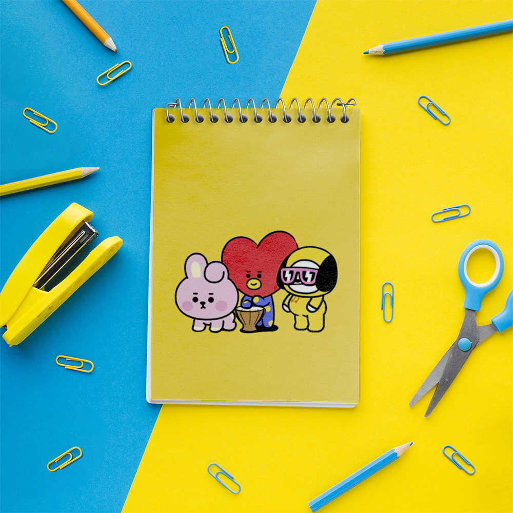 برند خندالو در زمینه تولید انواع دفاتر فانتزی و تحصیلی فعالیت میکند که به دلیل جذابیت ظاهری و طرح های متنوع طرفداران زیادی دارد. دفتر یادداشت خندالو طرح BT21 محصولی مناسب برای همه عاشقان لوازم التحریر است و همچنین همه کسانی که بنا به موقعیت تحصیل یا شغلشان با دفتر و نوشت افزار زیاد سر و کار دارند. در تولید دفتر یادداشت خندالو طرح BT21 از نوع صحافی فنر مارپیچ استفاده شده که در این نوع صحافی برگه‌ها به راحتی چرخیده و یا بیرون آورده می شوند.