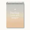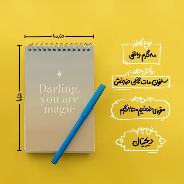 برند خندالو در زمینه تولید انواع دفاتر فانتزی و تحصیلی فعالیت میکند که به دلیل جذابیت ظاهری و طرح های متنوع طرفداران زیادی دارد. دفتر یادداشت خندالو طرح Darling You Are Magic محصولی مناسب برای همه عاشقان لوازم التحریر است و همچنین همه کسانی که بنا به موقعیت تحصیل یا شغلشان با دفتر و نوشت افزار زیاد سر و کار دارند. در تولید دفتر یادداشت خندالو طرح Darling You Are Magic از نوع صحافی فنر مارپیچ استفاده شده که در این نوع صحافی برگهها به راحتی چرخیده و یا بیرون آورده می شوند. دفتر های خندالو دارای جلد انعطاف پذیر از جنس مقوای گلاسه 250 گرم با روکش سلفون مات مخملی است که به شما امکان میدهد از دفتر خود بدون اینکه نگرانی از شکستن یا خراب شدن جلد را داشته باشید استفاده کنید و همچنین در این دفاتر از کاغذ 80 گرم با کیفیت استفاده شده که باعث میشود هنگام نوشتن به خوبی جوهر قلم بر روی صفحه نشسته و از خط خوردگیها جلوگیری کند. دفتر یادداشت خندالو با جنس و دوام مناسب، برگه های کاملاً سفید و خطوط طوسی دقیق را داراست که انسان را به نوشتن منظم و زیبا ترغیب میکند. طراحی کاملاً مناسب این دفاتر، به همراه کیفیت بالا، از آن یک محصول مورد علاقه و قابل اعتماد برای همه مقاطع تحصیلی میسازد. دفتر یادداشت خندالو طرح Darling You Are Magic انتخابی هوشمندانه و مناسب برای افرادی است که به دنبال دفتری با کیفیت و کاربرد عالی هستند. این دفتر، همراه خوبی برای شما در تمام مراحل تحصیل و کار خواهد بود و تجربهای لذتبخش از نوشتن و آموختن را به شما هدیه میدهد.