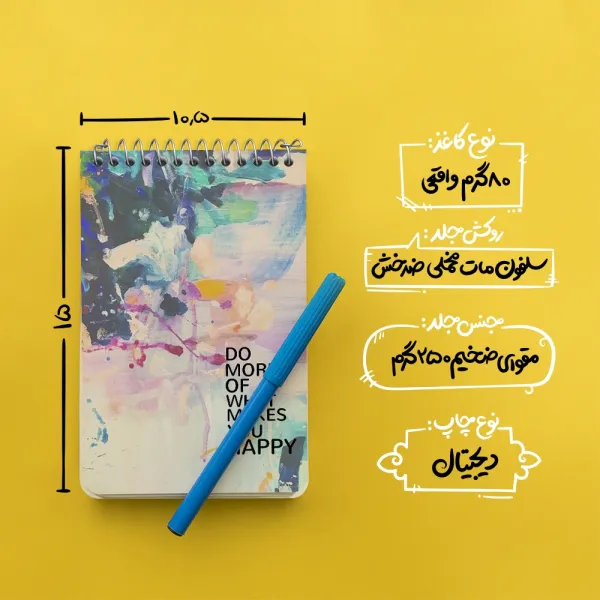برند خندالو در زمینه تولید انواع دفاتر فانتزی و تحصیلی فعالیت میکند که به دلیل جذابیت ظاهری و طرح های متنوع طرفداران زیادی دارد. دفتر یادداشت خندالو طرح Do More Of What Makes You Happy محصولی مناسب برای همه عاشقان لوازم التحریر است و همچنین همه کسانی که بنا به موقعیت تحصیل یا شغلشان با دفتر و نوشت افزار زیاد سر و کار دارند. در تولید دفتر یادداشت خندالو طرح Do More Of What Makes You Happy از نوع صحافی فنر مارپیچ استفاده شده که در این نوع صحافی برگهها به راحتی چرخیده و یا بیرون آورده می شوند. دفتر های خندالو دارای جلد انعطاف پذیر از جنس مقوای گلاسه 250 گرم با روکش سلفون مات مخملی است که به شما امکان میدهد از دفتر خود بدون اینکه نگرانی از شکستن یا خراب شدن جلد را داشته باشید استفاده کنید و همچنین در این دفاتر از کاغذ 80 گرم با کیفیت استفاده شده که باعث میشود هنگام نوشتن به خوبی جوهر قلم بر روی صفحه نشسته و از خط خوردگیها جلوگیری کند. دفتر یادداشت خندالو با جنس و دوام مناسب، برگه های کاملاً سفید و خطوط طوسی دقیق را داراست که انسان را به نوشتن منظم و زیبا ترغیب میکند. طراحی کاملاً مناسب این دفاتر، به همراه کیفیت بالا، از آن یک محصول مورد علاقه و قابل اعتماد برای همه مقاطع تحصیلی میسازد. دفتر یادداشت خندالو طرح Do More Of What Makes You Happy انتخابی هوشمندانه و مناسب برای افرادی است که به دنبال دفتری با کیفیت و کاربرد عالی هستند. این دفتر، همراه خوبی برای شما در تمام مراحل تحصیل و کار خواهد بود و تجربهای لذتبخش از نوشتن و آموختن را به شما هدیه میدهد.