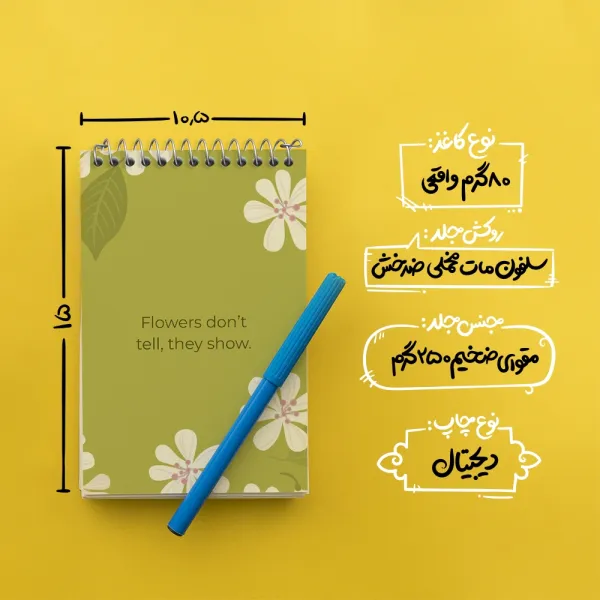 برند خندالو در زمینه تولید انواع دفاتر فانتزی و تحصیلی فعالیت میکند که به دلیل جذابیت ظاهری و طرح های متنوع طرفداران زیادی دارد. دفتر یادداشت خندالو طرح Flowers Don’t Tell They Show محصولی مناسب برای همه عاشقان لوازم التحریر است و همچنین همه کسانی که بنا به موقعیت تحصیل یا شغلشان با دفتر و نوشت افزار زیاد سر و کار دارند. در تولید دفتر یادداشت خندالو طرح Flowers Don’t Tell They Show از نوع صحافی فنر مارپیچ استفاده شده که در این نوع صحافی برگهها به راحتی چرخیده و یا بیرون آورده می شوند. دفتر های خندالو دارای جلد انعطاف پذیر از جنس مقوای گلاسه 250 گرم با روکش سلفون مات مخملی است که به شما امکان میدهد از دفتر خود بدون اینکه نگرانی از شکستن یا خراب شدن جلد را داشته باشید استفاده کنید و همچنین در این دفاتر از کاغذ 80 گرم با کیفیت استفاده شده که باعث میشود هنگام نوشتن به خوبی جوهر قلم بر روی صفحه نشسته و از خط خوردگیها جلوگیری کند. دفتر یادداشت خندالو با جنس و دوام مناسب، برگه های کاملاً سفید و خطوط طوسی دقیق را داراست که انسان را به نوشتن منظم و زیبا ترغیب میکند. طراحی کاملاً مناسب این دفاتر، به همراه کیفیت بالا، از آن یک محصول مورد علاقه و قابل اعتماد برای همه مقاطع تحصیلی میسازد. دفتر یادداشت خندالو طرح Flowers Don’t Tell They Show انتخابی هوشمندانه و مناسب برای افرادی است که به دنبال دفتری با کیفیت و کاربرد عالی هستند. این دفتر، همراه خوبی برای شما در تمام مراحل تحصیل و کار خواهد بود و تجربهای لذتبخش از نوشتن و آموختن را به شما هدیه میدهد.