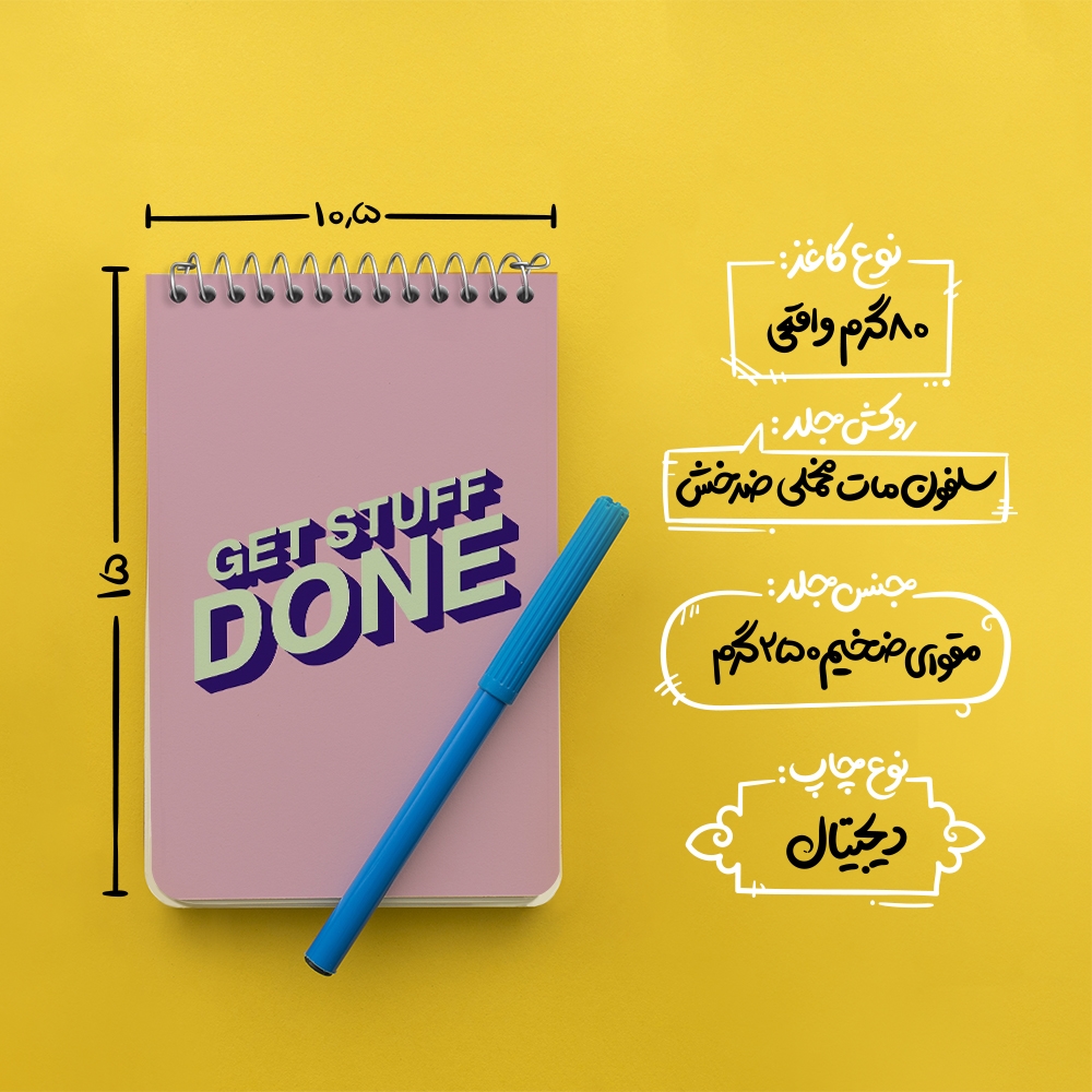 برند خندالو در زمینه تولید انواع دفاتر فانتزی و تحصیلی فعالیت میکند که به دلیل جذابیت ظاهری و طرح های متنوع طرفداران زیادی دارد. دفتر یادداشت خندالو طرح Get Stuff Done محصولی مناسب برای همه عاشقان لوازم التحریر است و همچنین همه کسانی که بنا به موقعیت تحصیل یا شغلشان با دفتر و نوشت افزار زیاد سر و کار دارند. در تولید دفتر یادداشت خندالو طرح Get Stuff Done از نوع صحافی فنر مارپیچ استفاده شده که در این نوع صحافی برگهها به راحتی چرخیده و یا بیرون آورده می شوند. دفتر های خندالو دارای جلد انعطاف پذیر از جنس مقوای گلاسه 250 گرم با روکش سلفون مات مخملی است که به شما امکان میدهد از دفتر خود بدون اینکه نگرانی از شکستن یا خراب شدن جلد را داشته باشید استفاده کنید و همچنین در این دفاتر از کاغذ 80 گرم با کیفیت استفاده شده که باعث میشود هنگام نوشتن به خوبی جوهر قلم بر روی صفحه نشسته و از خط خوردگیها جلوگیری کند. دفتر یادداشت خندالو با جنس و دوام مناسب، برگه های کاملاً سفید و خطوط طوسی دقیق را داراست که انسان را به نوشتن منظم و زیبا ترغیب میکند. طراحی کاملاً مناسب این دفاتر، به همراه کیفیت بالا، از آن یک محصول مورد علاقه و قابل اعتماد برای همه مقاطع تحصیلی میسازد. دفتر یادداشت خندالو طرح Get Stuff Done انتخابی هوشمندانه و مناسب برای افرادی است که به دنبال دفتری با کیفیت و کاربرد عالی هستند. این دفتر، همراه خوبی برای شما در تمام مراحل تحصیل و کار خواهد بود و تجربهای لذتبخش از نوشتن و آموختن را به شما هدیه میدهد.