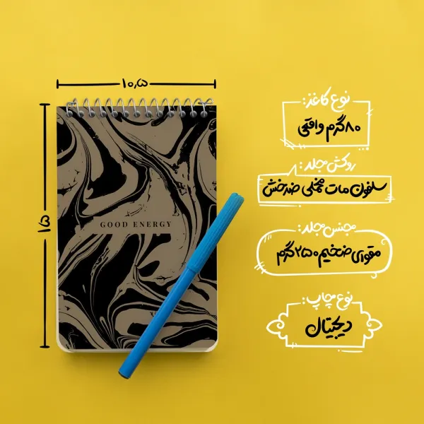برند خندالو در زمینه تولید انواع دفاتر فانتزی و تحصیلی فعالیت میکند که به دلیل جذابیت ظاهری و طرح های متنوع طرفداران زیادی دارد. دفتر یادداشت خندالو طرح Good Energy محصولی مناسب برای همه عاشقان لوازم التحریر است و همچنین همه کسانی که بنا به موقعیت تحصیل یا شغلشان با دفتر و نوشت افزار زیاد سر و کار دارند. در تولید دفتر یادداشت خندالو طرح Good Energy از نوع صحافی فنر مارپیچ استفاده شده که در این نوع صحافی برگه‌ها به راحتی چرخیده و یا بیرون آورده می شوند.