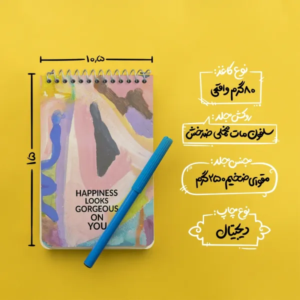 برند خندالو در زمینه تولید انواع دفاتر فانتزی و تحصیلی فعالیت میکند که به دلیل جذابیت ظاهری و طرح های متنوع طرفداران زیادی دارد. دفتر یادداشت خندالو طرح Happiness Looks Gorgeous On You محصولی مناسب برای همه عاشقان لوازم التحریر است و همچنین همه کسانی که بنا به موقعیت تحصیل یا شغلشان با دفتر و نوشت افزار زیاد سر و کار دارند. در تولید دفتر یادداشت خندالو طرح Happiness Looks Gorgeous On You از نوع صحافی فنر مارپیچ استفاده شده که در این نوع صحافی برگهها به راحتی چرخیده و یا بیرون آورده می شوند. دفتر های خندالو دارای جلد انعطاف پذیر از جنس مقوای گلاسه 250 گرم با روکش سلفون مات مخملی است که به شما امکان میدهد از دفتر خود بدون اینکه نگرانی از شکستن یا خراب شدن جلد را داشته باشید استفاده کنید و همچنین در این دفاتر از کاغذ 80 گرم با کیفیت استفاده شده که باعث میشود هنگام نوشتن به خوبی جوهر قلم بر روی صفحه نشسته و از خط خوردگیها جلوگیری کند. دفتر یادداشت خندالو با جنس و دوام مناسب، برگه های کاملاً سفید و خطوط طوسی دقیق را داراست که انسان را به نوشتن منظم و زیبا ترغیب میکند. طراحی کاملاً مناسب این دفاتر، به همراه کیفیت بالا، از آن یک محصول مورد علاقه و قابل اعتماد برای همه مقاطع تحصیلی میسازد. دفتر یادداشت خندالو طرح Happiness Looks Gorgeous On You انتخابی هوشمندانه و مناسب برای افرادی است که به دنبال دفتری با کیفیت و کاربرد عالی هستند. این دفتر، همراه خوبی برای شما در تمام مراحل تحصیل و کار خواهد بود و تجربهای لذتبخش از نوشتن و آموختن را به شما هدیه میدهد.