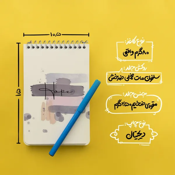 برند خندالو در زمینه تولید انواع دفاتر فانتزی و تحصیلی فعالیت میکند که به دلیل جذابیت ظاهری و طرح های متنوع طرفداران زیادی دارد. دفتر یادداشت خندالو طرح Hope محصولی مناسب برای همه عاشقان لوازم التحریر است و همچنین همه کسانی که بنا به موقعیت تحصیل یا شغلشان با دفتر و نوشت افزار زیاد سر و کار دارند. در تولید دفتر یادداشت خندالو طرح Hope از نوع صحافی فنر مارپیچ استفاده شده که در این نوع صحافی برگه‌ها به راحتی چرخیده و یا بیرون آورده می شوند.