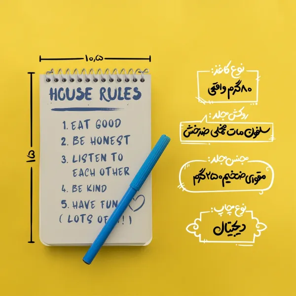 برند خندالو در زمینه تولید انواع دفاتر فانتزی و تحصیلی فعالیت میکند که به دلیل جذابیت ظاهری و طرح های متنوع طرفداران زیادی دارد. دفتر یادداشت خندالو طرح House Rules محصولی مناسب برای همه عاشقان لوازم التحریر است و همچنین همه کسانی که بنا به موقعیت تحصیل یا شغلشان با دفتر و نوشت افزار زیاد سر و کار دارند. در تولید دفتر یادداشت خندالو طرح House Rules از نوع صحافی فنر مارپیچ استفاده شده که در این نوع صحافی برگهها به راحتی چرخیده و یا بیرون آورده می شوند. دفتر های خندالو دارای جلد انعطاف پذیر از جنس مقوای گلاسه 250 گرم با روکش سلفون مات مخملی است که به شما امکان میدهد از دفتر خود بدون اینکه نگرانی از شکستن یا خراب شدن جلد را داشته باشید استفاده کنید و همچنین در این دفاتر از کاغذ 80 گرم با کیفیت استفاده شده که باعث میشود هنگام نوشتن به خوبی جوهر قلم بر روی صفحه نشسته و از خط خوردگیها جلوگیری کند. دفتر یادداشت خندالو با جنس و دوام مناسب، برگه های کاملاً سفید و خطوط طوسی دقیق را داراست که انسان را به نوشتن منظم و زیبا ترغیب میکند. طراحی کاملاً مناسب این دفاتر، به همراه کیفیت بالا، از آن یک محصول مورد علاقه و قابل اعتماد برای همه مقاطع تحصیلی میسازد. دفتر یادداشت خندالو طرح House Rules انتخابی هوشمندانه و مناسب برای افرادی است که به دنبال دفتری با کیفیت و کاربرد عالی هستند. این دفتر، همراه خوبی برای شما در تمام مراحل تحصیل و کار خواهد بود و تجربهای لذتبخش از نوشتن و آموختن را به شما هدیه میدهد.