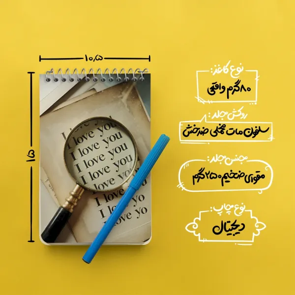 برند خندالو در زمینه تولید انواع دفاتر فانتزی و تحصیلی فعالیت میکند که به دلیل جذابیت ظاهری و طرح های متنوع طرفداران زیادی دارد. دفتر یادداشت خندالو طرح I Love You محصولی مناسب برای همه عاشقان لوازم التحریر است و همچنین همه کسانی که بنا به موقعیت تحصیل یا شغلشان با دفتر و نوشت افزار زیاد سر و کار دارند. در تولید دفتر یادداشت خندالو طرح I Love You از نوع صحافی فنر مارپیچ استفاده شده که در این نوع صحافی برگه‌ها به راحتی چرخیده و یا بیرون آورده می شوند.