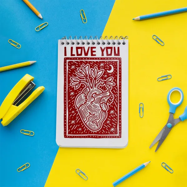برند خندالو در زمینه تولید انواع دفاتر فانتزی و تحصیلی فعالیت میکند که به دلیل جذابیت ظاهری و طرح های متنوع طرفداران زیادی دارد. دفتر یادداشت خندالو طرح I Love You محصولی مناسب برای همه عاشقان لوازم التحریر است و همچنین همه کسانی که بنا به موقعیت تحصیل یا شغلشان با دفتر و نوشت افزار زیاد سر و کار دارند. در تولید دفتر یادداشت خندالو طرح I Love You از نوع صحافی فنر مارپیچ استفاده شده که در این نوع صحافی برگه‌ها به راحتی چرخیده و یا بیرون آورده می شوند.