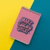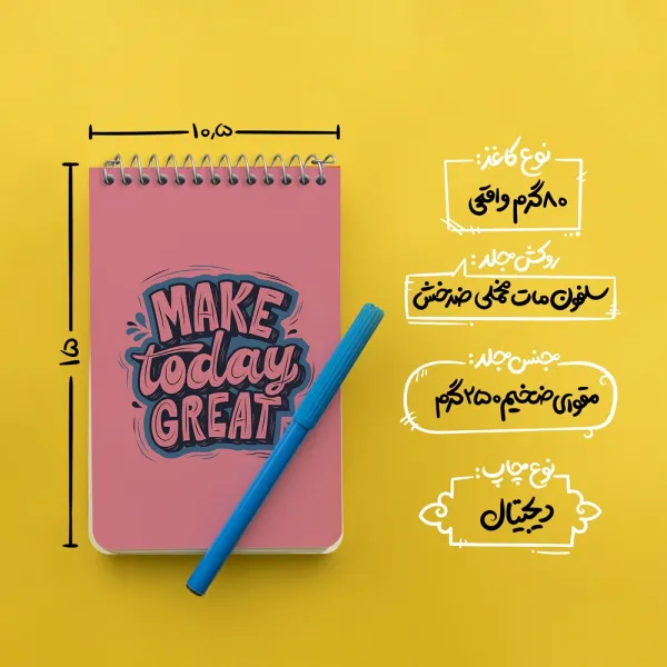 برند خندالو در زمینه تولید انواع دفاتر فانتزی و تحصیلی فعالیت میکند که به دلیل جذابیت ظاهری و طرح های متنوع طرفداران زیادی دارد. دفتر یادداشت خندالو طرح Make Today Great محصولی مناسب برای همه عاشقان لوازم التحریر است و همچنین همه کسانی که بنا به موقعیت تحصیل یا شغلشان با دفتر و نوشت افزار زیاد سر و کار دارند. در تولید دفتر یادداشت خندالو طرح Make Today Great از نوع صحافی فنر مارپیچ استفاده شده که در این نوع صحافی برگه‌ها به راحتی چرخیده و یا بیرون آورده می شوند.