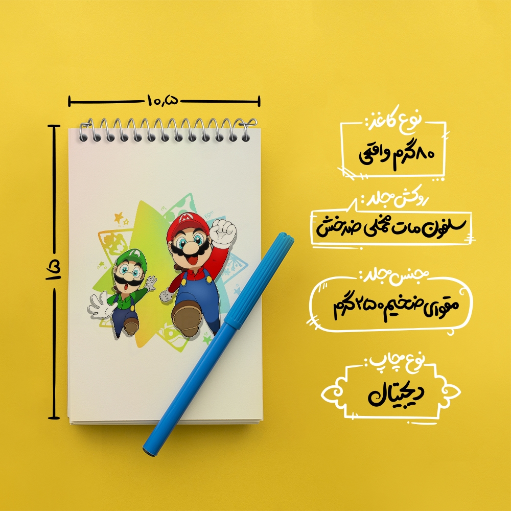 برند خندالو در زمینه تولید انواع دفاتر فانتزی و تحصیلی فعالیت میکند که به دلیل جذابیت ظاهری و طرح های متنوع طرفداران زیادی دارد. دفتر یادداشت خندالو طرح (Mario) بازی سوپر ماریو محصولی مناسب برای همه عاشقان لوازم التحریر است و همچنین همه کسانی که بنا به موقعیت تحصیل یا شغلشان با دفتر و نوشت افزار زیاد سر و کار دارند. در تولید دفتر یادداشت خندالو طرح (Mario) بازی سوپر ماریو از نوع صحافی فنر مارپیچ استفاده شده که در این نوع صحافی برگهها به راحتی چرخیده و یا بیرون آورده می شوند. دفتر های خندالو دارای جلد انعطاف پذیر از جنس مقوای گلاسه 250 گرم با روکش سلفون مات مخملی است که به شما امکان میدهد از دفتر خود بدون اینکه نگرانی از شکستن یا خراب شدن جلد را داشته باشید استفاده کنید و همچنین در این دفاتر از کاغذ 80 گرم با کیفیت استفاده شده که باعث میشود هنگام نوشتن به خوبی جوهر قلم بر روی صفحه نشسته و از خط خوردگیها جلوگیری کند. دفتر یادداشت خندالو با جنس و دوام مناسب، برگه های کاملاً سفید و خطوط طوسی دقیق را داراست که انسان را به نوشتن منظم و زیبا ترغیب میکند. طراحی کاملاً مناسب این دفاتر، به همراه کیفیت بالا، از آن یک محصول مورد علاقه و قابل اعتماد برای همه مقاطع تحصیلی میسازد. دفتر یادداشت خندالو طرح (Mario) بازی سوپر ماریو انتخابی هوشمندانه و مناسب برای افرادی است که به دنبال دفتری با کیفیت و کاربرد عالی هستند. این دفتر، همراه خوبی برای شما در تمام مراحل تحصیل و کار خواهد بود و تجربهای لذتبخش از نوشتن و آموختن را به شما هدیه میدهد.
