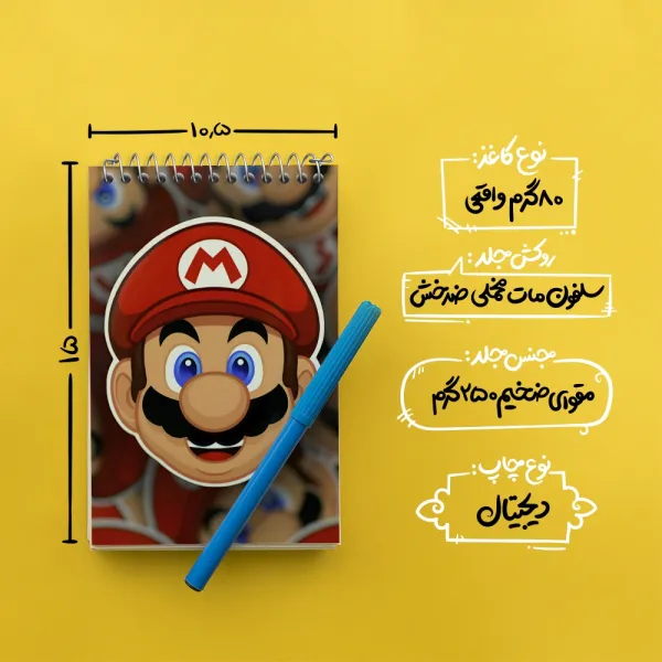 برند خندالو در زمینه تولید انواع دفاتر فانتزی و تحصیلی فعالیت میکند که به دلیل جذابیت ظاهری و طرح های متنوع طرفداران زیادی دارد. دفتر یادداشت خندالو طرح (Mario) سوپر ماریو محصولی مناسب برای همه عاشقان لوازم التحریر است و همچنین همه کسانی که بنا به موقعیت تحصیل یا شغلشان با دفتر و نوشت افزار زیاد سر و کار دارند. در تولید دفتر یادداشت خندالو طرح (Mario) سوپر ماریو از نوع صحافی فنر مارپیچ استفاده شده که در این نوع صحافی برگه‌ها به راحتی چرخیده و یا بیرون آورده می شوند.
