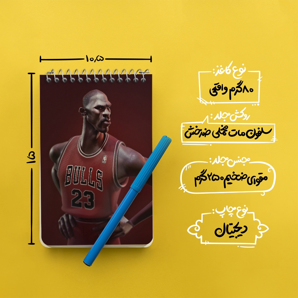 برند خندالو در زمینه تولید انواع دفاتر فانتزی و تحصیلی فعالیت میکند که به دلیل جذابیت ظاهری و طرح های متنوع طرفداران زیادی دارد. دفتر یادداشت خندالو طرح Michael Jordan محصولی مناسب برای همه عاشقان لوازم التحریر است و همچنین همه کسانی که بنا به موقعیت تحصیل یا شغلشان با دفتر و نوشت افزار زیاد سر و کار دارند. در تولید دفتر یادداشت خندالو طرح Michael Jordan از نوع صحافی فنر مارپیچ استفاده شده که در این نوع صحافی برگهها به راحتی چرخیده و یا بیرون آورده می شوند. دفتر های خندالو دارای جلد انعطاف پذیر از جنس مقوای گلاسه 250 گرم با روکش سلفون مات مخملی است که به شما امکان میدهد از دفتر خود بدون اینکه نگرانی از شکستن یا خراب شدن جلد را داشته باشید استفاده کنید و همچنین در این دفاتر از کاغذ 80 گرم با کیفیت استفاده شده که باعث میشود هنگام نوشتن به خوبی جوهر قلم بر روی صفحه نشسته و از خط خوردگیها جلوگیری کند. دفتر یادداشت خندالو با جنس و دوام مناسب، برگه های کاملاً سفید و خطوط طوسی دقیق را داراست که انسان را به نوشتن منظم و زیبا ترغیب میکند. طراحی کاملاً مناسب این دفاتر، به همراه کیفیت بالا، از آن یک محصول مورد علاقه و قابل اعتماد برای همه مقاطع تحصیلی میسازد. دفتر یادداشت خندالو طرح Michael Jordan انتخابی هوشمندانه و مناسب برای افرادی است که به دنبال دفتری با کیفیت و کاربرد عالی هستند. این دفتر، همراه خوبی برای شما در تمام مراحل تحصیل و کار خواهد بود و تجربهای لذتبخش از نوشتن و آموختن را به شما هدیه میدهد.