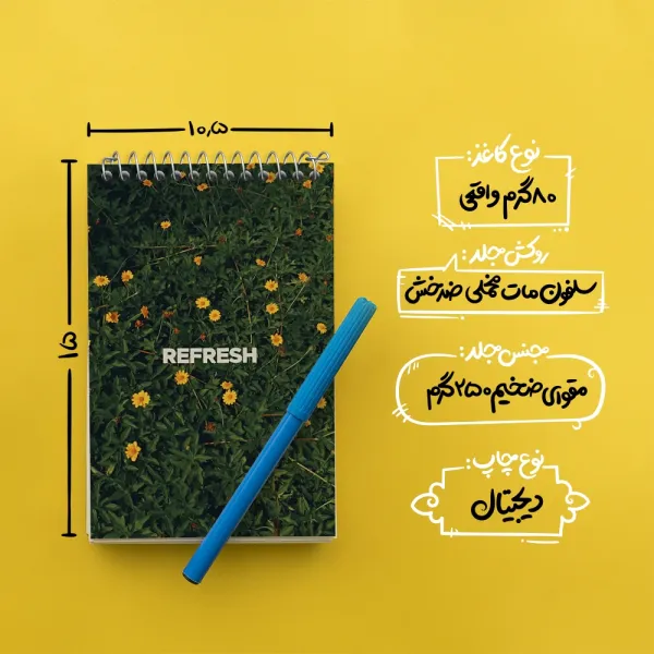 برند خندالو در زمینه تولید انواع دفاتر فانتزی و تحصیلی فعالیت میکند که به دلیل جذابیت ظاهری و طرح های متنوع طرفداران زیادی دارد. دفتر یادداشت خندالو طرح Refresh محصولی مناسب برای همه عاشقان لوازم التحریر است و همچنین همه کسانی که بنا به موقعیت تحصیل یا شغلشان با دفتر و نوشت افزار زیاد سر و کار دارند. در تولید دفتر یادداشت خندالو طرح Refresh از نوع صحافی فنر مارپیچ استفاده شده که در این نوع صحافی برگهها به راحتی چرخیده و یا بیرون آورده می شوند. دفتر های خندالو دارای جلد انعطاف پذیر از جنس مقوای گلاسه 250 گرم با روکش سلفون مات مخملی است که به شما امکان میدهد از دفتر خود بدون اینکه نگرانی از شکستن یا خراب شدن جلد را داشته باشید استفاده کنید و همچنین در این دفاتر از کاغذ 80 گرم با کیفیت استفاده شده که باعث میشود هنگام نوشتن به خوبی جوهر قلم بر روی صفحه نشسته و از خط خوردگیها جلوگیری کند. دفتر یادداشت خندالو با جنس و دوام مناسب، برگه های کاملاً سفید و خطوط طوسی دقیق را داراست که انسان را به نوشتن منظم و زیبا ترغیب میکند. طراحی کاملاً مناسب این دفاتر، به همراه کیفیت بالا، از آن یک محصول مورد علاقه و قابل اعتماد برای همه مقاطع تحصیلی میسازد. دفتر یادداشت خندالو طرح Refresh انتخابی هوشمندانه و مناسب برای افرادی است که به دنبال دفتری با کیفیت و کاربرد عالی هستند. این دفتر، همراه خوبی برای شما در تمام مراحل تحصیل و کار خواهد بود و تجربهای لذتبخش از نوشتن و آموختن را به شما هدیه میدهد.