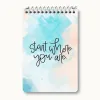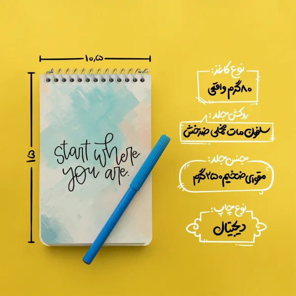 برند خندالو در زمینه تولید انواع دفاتر فانتزی و تحصیلی فعالیت میکند که به دلیل جذابیت ظاهری و طرح های متنوع طرفداران زیادی دارد. دفتر یادداشت خندالو طرح Start Where You Are محصولی مناسب برای همه عاشقان لوازم التحریر است و همچنین همه کسانی که بنا به موقعیت تحصیل یا شغلشان با دفتر و نوشت افزار زیاد سر و کار دارند. در تولید دفتر یادداشت خندالو طرح Start Where You Are از نوع صحافی فنر مارپیچ استفاده شده که در این نوع صحافی برگه‌ها به راحتی چرخیده و یا بیرون آورده می شوند.