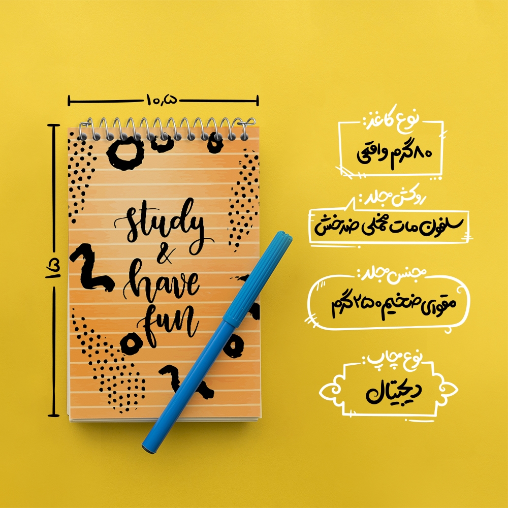 برند خندالو در زمینه تولید انواع دفاتر فانتزی و تحصیلی فعالیت میکند که به دلیل جذابیت ظاهری و طرح های متنوع طرفداران زیادی دارد. دفتر یادداشت خندالو طرح Study And Have Fun محصولی مناسب برای همه عاشقان لوازم التحریر است و همچنین همه کسانی که بنا به موقعیت تحصیل یا شغلشان با دفتر و نوشت افزار زیاد سر و کار دارند. در تولید دفتر یادداشت خندالو طرح Study And Have Fun از نوع صحافی فنر مارپیچ استفاده شده که در این نوع صحافی برگهها به راحتی چرخیده و یا بیرون آورده می شوند. دفتر های خندالو دارای جلد انعطاف پذیر از جنس مقوای گلاسه 250 گرم با روکش سلفون مات مخملی است که به شما امکان میدهد از دفتر خود بدون اینکه نگرانی از شکستن یا خراب شدن جلد را داشته باشید استفاده کنید و همچنین در این دفاتر از کاغذ 80 گرم با کیفیت استفاده شده که باعث میشود هنگام نوشتن به خوبی جوهر قلم بر روی صفحه نشسته و از خط خوردگیها جلوگیری کند. دفتر یادداشت خندالو با جنس و دوام مناسب، برگه های کاملاً سفید و خطوط طوسی دقیق را داراست که انسان را به نوشتن منظم و زیبا ترغیب میکند. طراحی کاملاً مناسب این دفاتر، به همراه کیفیت بالا، از آن یک محصول مورد علاقه و قابل اعتماد برای همه مقاطع تحصیلی میسازد. دفتر یادداشت خندالو طرح Study And Have Fun انتخابی هوشمندانه و مناسب برای افرادی است که به دنبال دفتری با کیفیت و کاربرد عالی هستند. این دفتر، همراه خوبی برای شما در تمام مراحل تحصیل و کار خواهد بود و تجربهای لذتبخش از نوشتن و آموختن را به شما هدیه میدهد.