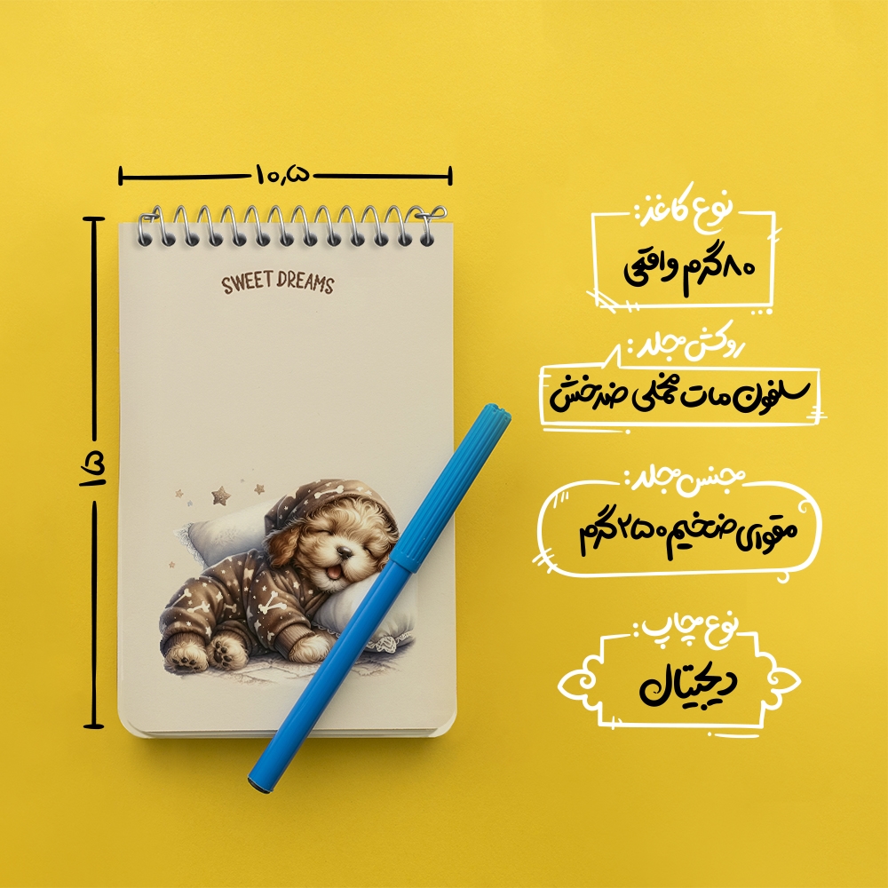 برند خندالو در زمینه تولید انواع دفاتر فانتزی و تحصیلی فعالیت میکند که به دلیل جذابیت ظاهری و طرح های متنوع طرفداران زیادی دارد. دفتر یادداشت خندالو طرح Sweet Dreams محصولی مناسب برای همه عاشقان لوازم التحریر است و همچنین همه کسانی که بنا به موقعیت تحصیل یا شغلشان با دفتر و نوشت افزار زیاد سر و کار دارند. در تولید دفتر یادداشت خندالو طرح Sweet Dreams از نوع صحافی فنر مارپیچ استفاده شده که در این نوع صحافی برگهها به راحتی چرخیده و یا بیرون آورده می شوند. دفتر های خندالو دارای جلد انعطاف پذیر از جنس مقوای گلاسه 250 گرم با روکش سلفون مات مخملی است که به شما امکان میدهد از دفتر خود بدون اینکه نگرانی از شکستن یا خراب شدن جلد را داشته باشید استفاده کنید و همچنین در این دفاتر از کاغذ 80 گرم با کیفیت استفاده شده که باعث میشود هنگام نوشتن به خوبی جوهر قلم بر روی صفحه نشسته و از خط خوردگیها جلوگیری کند. دفتر یادداشت خندالو با جنس و دوام مناسب، برگه های کاملاً سفید و خطوط طوسی دقیق را داراست که انسان را به نوشتن منظم و زیبا ترغیب میکند. طراحی کاملاً مناسب این دفاتر، به همراه کیفیت بالا، از آن یک محصول مورد علاقه و قابل اعتماد برای همه مقاطع تحصیلی میسازد. دفتر یادداشت خندالو طرح Sweet Dreams انتخابی هوشمندانه و مناسب برای افرادی است که به دنبال دفتری با کیفیت و کاربرد عالی هستند. این دفتر، همراه خوبی برای شما در تمام مراحل تحصیل و کار خواهد بود و تجربهای لذتبخش از نوشتن و آموختن را به شما هدیه میدهد.
