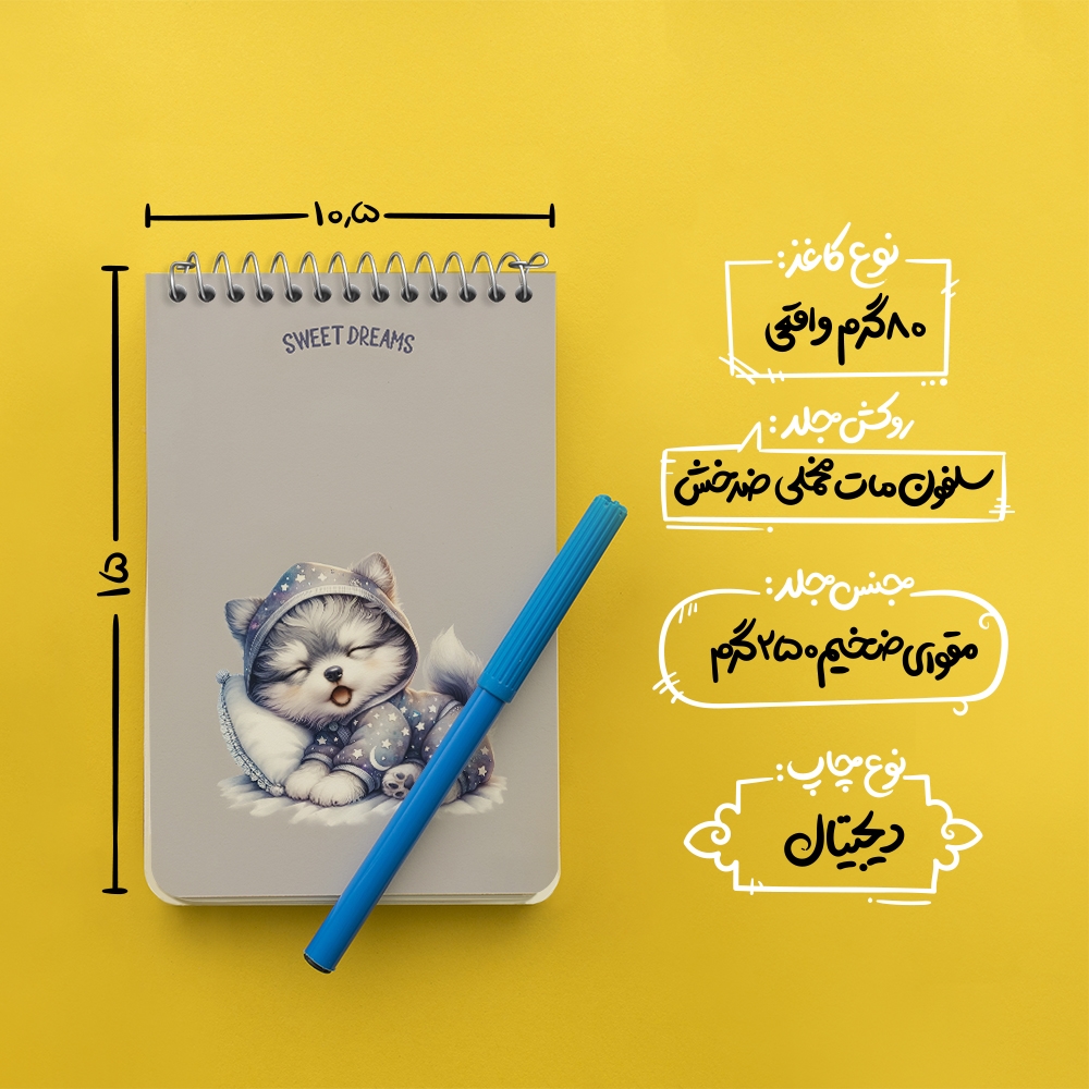 برند خندالو در زمینه تولید انواع دفاتر فانتزی و تحصیلی فعالیت میکند که به دلیل جذابیت ظاهری و طرح های متنوع طرفداران زیادی دارد. دفتر یادداشت خندالو طرح Sweet Dreams محصولی مناسب برای همه عاشقان لوازم التحریر است و همچنین همه کسانی که بنا به موقعیت تحصیل یا شغلشان با دفتر و نوشت افزار زیاد سر و کار دارند. در تولید دفتر یادداشت خندالو طرح Sweet Dreams از نوع صحافی فنر مارپیچ استفاده شده که در این نوع صحافی برگهها به راحتی چرخیده و یا بیرون آورده می شوند. دفتر های خندالو دارای جلد انعطاف پذیر از جنس مقوای گلاسه 250 گرم با روکش سلفون مات مخملی است که به شما امکان میدهد از دفتر خود بدون اینکه نگرانی از شکستن یا خراب شدن جلد را داشته باشید استفاده کنید و همچنین در این دفاتر از کاغذ 80 گرم با کیفیت استفاده شده که باعث میشود هنگام نوشتن به خوبی جوهر قلم بر روی صفحه نشسته و از خط خوردگیها جلوگیری کند. دفتر یادداشت خندالو با جنس و دوام مناسب، برگه های کاملاً سفید و خطوط طوسی دقیق را داراست که انسان را به نوشتن منظم و زیبا ترغیب میکند. طراحی کاملاً مناسب این دفاتر، به همراه کیفیت بالا، از آن یک محصول مورد علاقه و قابل اعتماد برای همه مقاطع تحصیلی میسازد. دفتر یادداشت خندالو طرح Sweet Dreams انتخابی هوشمندانه و مناسب برای افرادی است که به دنبال دفتری با کیفیت و کاربرد عالی هستند. این دفتر، همراه خوبی برای شما در تمام مراحل تحصیل و کار خواهد بود و تجربهای لذتبخش از نوشتن و آموختن را به شما هدیه میدهد.