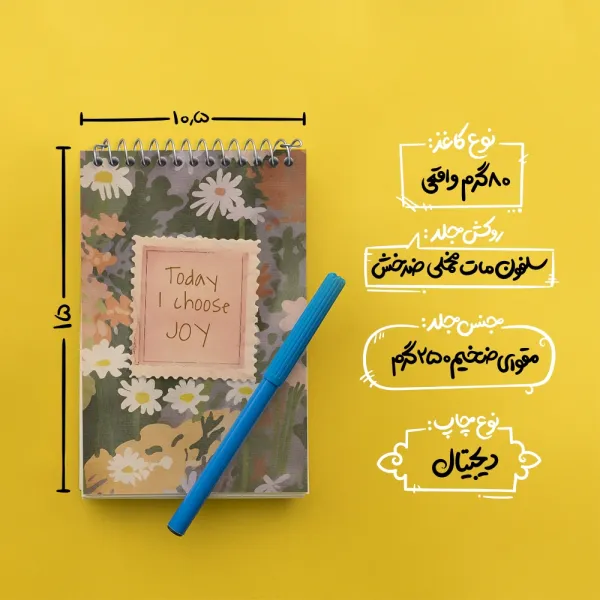 برند خندالو در زمینه تولید انواع دفاتر فانتزی و تحصیلی فعالیت میکند که به دلیل جذابیت ظاهری و طرح های متنوع طرفداران زیادی دارد. دفتر یادداشت خندالو طرح Today I choose joy محصولی مناسب برای همه عاشقان لوازم التحریر است و همچنین همه کسانی که بنا به موقعیت تحصیل یا شغلشان با دفتر و نوشت افزار زیاد سر و کار دارند. در تولید دفتر یادداشت خندالو طرح Today I choose joy از نوع صحافی فنر مارپیچ استفاده شده که در این نوع صحافی برگهها به راحتی چرخیده و یا بیرون آورده می شوند. دفتر های خندالو دارای جلد انعطاف پذیر از جنس مقوای گلاسه 250 گرم با روکش سلفون مات مخملی است که به شما امکان میدهد از دفتر خود بدون اینکه نگرانی از شکستن یا خراب شدن جلد را داشته باشید استفاده کنید و همچنین در این دفاتر از کاغذ 80 گرم با کیفیت استفاده شده که باعث میشود هنگام نوشتن به خوبی جوهر قلم بر روی صفحه نشسته و از خط خوردگیها جلوگیری کند. دفتر یادداشت خندالو با جنس و دوام مناسب، برگه های کاملاً سفید و خطوط طوسی دقیق را داراست که انسان را به نوشتن منظم و زیبا ترغیب میکند. طراحی کاملاً مناسب این دفاتر، به همراه کیفیت بالا، از آن یک محصول مورد علاقه و قابل اعتماد برای همه مقاطع تحصیلی میسازد. دفتر یادداشت خندالو طرح Today I choose joy انتخابی هوشمندانه و مناسب برای افرادی است که به دنبال دفتری با کیفیت و کاربرد عالی هستند. این دفتر، همراه خوبی برای شما در تمام مراحل تحصیل و کار خواهد بود و تجربهای لذتبخش از نوشتن و آموختن را به شما هدیه میدهد.