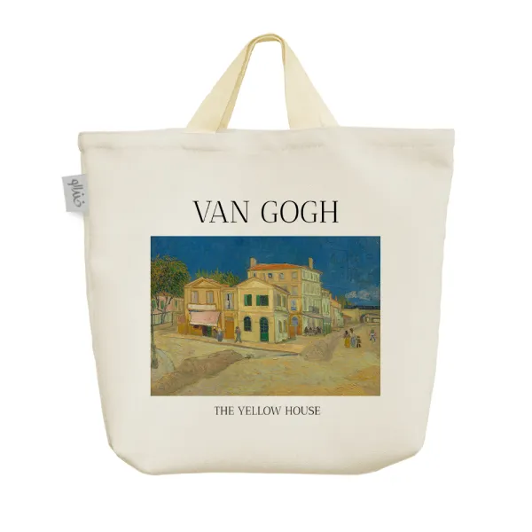 ساک خرید پارچه ای خانه زرد ونسان ونگوگ محصولی کاربردیست که به کمک آن میتوان مصرف کیسه های نایلونی و پلاستیکی را کاهش داد. این ساک ها از جنس پارچه گونی بافت تولید شده و مقاومت بالایی دارند. جنس بند ها نخ پنبه است و با اتصال محکمی به بدنه ساک دوخته شده اند. چاپ ساک پارچه ای خانه زرد ونسان ونگوگ بصورت دیجیتال انجام گرفته و کاملا قابل شستشو در ماشین لباسشویی و بصورت دستی می باشد. از ساک پارچه ای خانه زرد ونسان ونگوگ به عنوان ساک خرید، ساک هدیه و کیف همراه برای اقلام مصرفی نیز میتوان استفاده کرد.