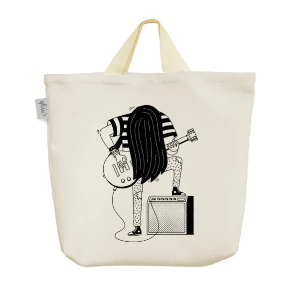 ساک خرید پارچه ای دختر گیتاریست محصولی کاربردیست که به کمک آن میتوان مصرف کیسه های نایلونی و پلاستیکی را کاهش داد. این ساک ها از جنس پارچه گونی بافت تولید شده و مقاومت بالایی دارند. جنس بند ها نخ پنبه است و با اتصال محکمی به بدنه ساک دوخته شده اند. چاپ ساک پارچه ای دختر گیتاریست بصورت دیجیتال انجام گرفته و کاملا قابل شستشو در ماشین لباسشویی و بصورت دستی می باشد. از ساک پارچه ای دختر گیتاریست به عنوان ساک خرید، ساک هدیه و کیف همراه برای اقلام مصرفی نیز میتوان استفاده کرد.