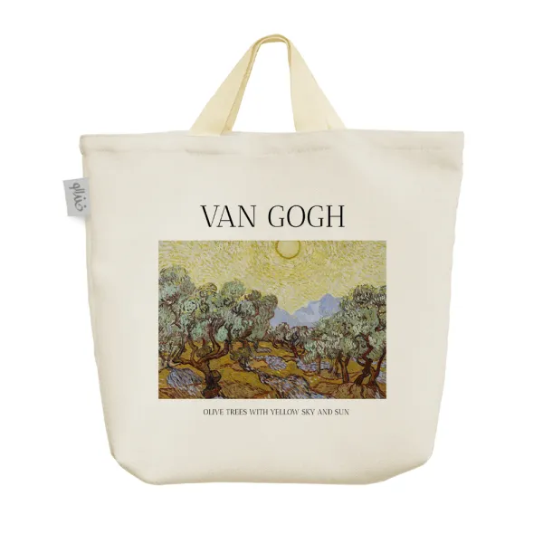 ساک خرید پارچه ای درختان زیتون ونسان ونگوگ محصولی کاربردیست که به کمک آن میتوان مصرف کیسه های نایلونی و پلاستیکی را کاهش داد. این ساک ها از جنس پارچه گونی بافت تولید شده و مقاومت بالایی دارند. جنس بند ها نخ پنبه است و با اتصال محکمی به بدنه ساک دوخته شده اند. چاپ ساک پارچه ای درختان زیتون ونسان ونگوگ بصورت دیجیتال انجام گرفته و کاملا قابل شستشو در ماشین لباسشویی و بصورت دستی می باشد. از ساک پارچه ای درختان زیتون ونسان ونگوگ به عنوان ساک خرید، ساک هدیه و کیف همراه برای اقلام مصرفی نیز میتوان استفاده کرد.