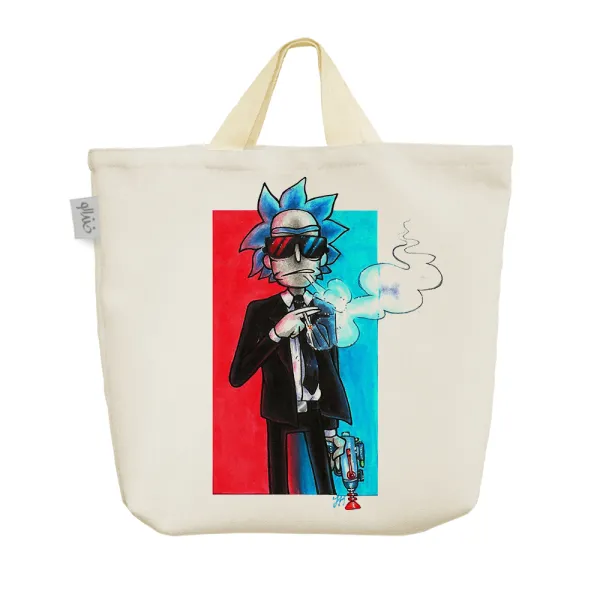 ساک خرید پارچه ای ریک و مورتی محصولی کاربردیست که به کمک آن میتوان مصرف کیسه های نایلونی و پلاستیکی را کاهش داد. این ساک ها از جنس پارچه گونی بافت تولید شده و مقاومت بالایی دارند. جنس بند ها نخ پنبه است و با اتصال محکمی به بدنه ساک دوخته شده اند. چاپ ساک پارچه ای ریک و مورتی بصورت دیجیتال انجام گرفته و کاملا قابل شستشو در ماشین لباسشویی و بصورت دستی می باشد. از ساک پارچه ای ریک و مورتی به عنوان ساک خرید، ساک هدیه و کیف همراه برای اقلام مصرفی نیز میتوان استفاده کرد.