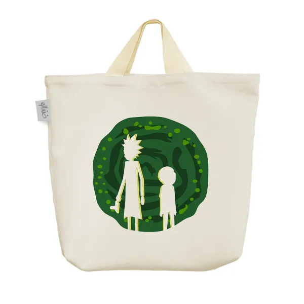 ساک خرید پارچه ای ریک و مورتی محصولی کاربردیست که به کمک آن میتوان مصرف کیسه های نایلونی و پلاستیکی را کاهش داد. این ساک ها از جنس پارچه گونی بافت تولید شده و مقاومت بالایی دارند. جنس بند ها نخ پنبه است و با اتصال محکمی به بدنه ساک دوخته شده اند. چاپ ساک پارچه ای ریک و مورتی بصورت دیجیتال انجام گرفته و کاملا قابل شستشو در ماشین لباسشویی و بصورت دستی می باشد. از ساک پارچه ای ریک و مورتی به عنوان ساک خرید، ساک هدیه و کیف همراه برای اقلام مصرفی نیز میتوان استفاده کرد.