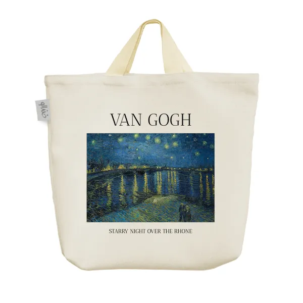 ساک خرید پارچه ای شب پر ستاره بر فراز رن ونسان ونگوگ محصولی کاربردیست که به کمک آن میتوان مصرف کیسه های نایلونی و پلاستیکی را کاهش داد. این ساک ها از جنس پارچه گونی بافت تولید شده و مقاومت بالایی دارند. جنس بند ها نخ پنبه است و با اتصال محکمی به بدنه ساک دوخته شده اند. چاپ ساک پارچه ای شب پر ستاره بر فراز رن ونسان ونگوگ بصورت دیجیتال انجام گرفته و کاملا قابل شستشو در ماشین لباسشویی و بصورت دستی می باشد. از ساک پارچه ای شب پر ستاره بر فراز رن ونسان ونگوگ به عنوان ساک خرید، ساک هدیه و کیف همراه برای اقلام مصرفی نیز میتوان استفاده کرد.