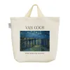 ساک خرید پارچه ای شب پر ستاره بر فراز رن ونسان ونگوگ محصولی کاربردیست که به کمک آن میتوان مصرف کیسه های نایلونی و پلاستیکی را کاهش داد. این ساک ها از جنس پارچه گونی بافت تولید شده و مقاومت بالایی دارند. جنس بند ها نخ پنبه است و با اتصال محکمی به بدنه ساک دوخته شده اند. چاپ ساک پارچه ای شب پر ستاره بر فراز رن ونسان ونگوگ بصورت دیجیتال انجام گرفته و کاملا قابل شستشو در ماشین لباسشویی و بصورت دستی می باشد. از ساک پارچه ای شب پر ستاره بر فراز رن ونسان ونگوگ به عنوان ساک خرید، ساک هدیه و کیف همراه برای اقلام مصرفی نیز میتوان استفاده کرد.