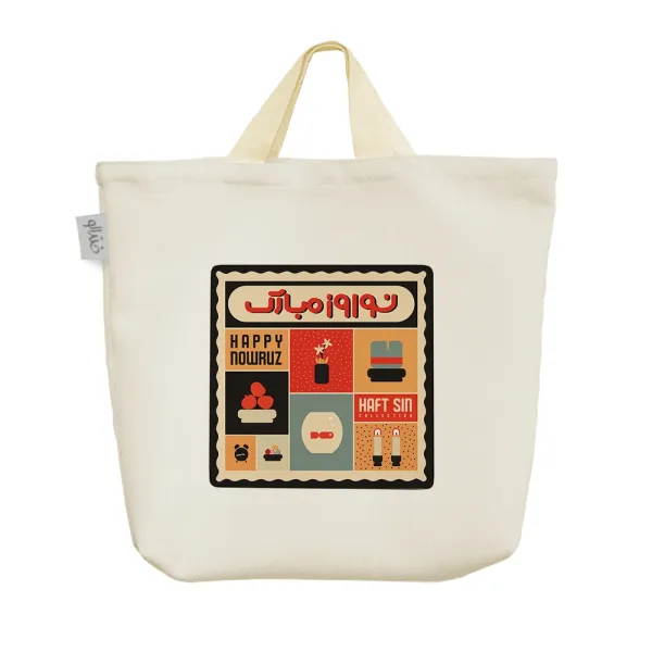 ساک خرید پارچه ای نوروز مبارک محصولی کاربردیست که به کمک آن میتوان مصرف کیسه های نایلونی و پلاستیکی را کاهش داد. این ساک ها از جنس پارچه گونی بافت تولید شده و مقاومت بالایی دارند. جنس بند ها نخ پنبه است و با اتصال محکمی به بدنه ساک دوخته شده اند. چاپ ساک پارچه ای نوروز مبارک بصورت دیجیتال انجام گرفته و کاملا قابل شستشو در ماشین لباسشویی و بصورت دستی می باشد. از ساک پارچه ای نوروز مبارک به عنوان ساک خرید، ساک هدیه و کیف همراه برای اقلام مصرفی نیز میتوان استفاده کرد.