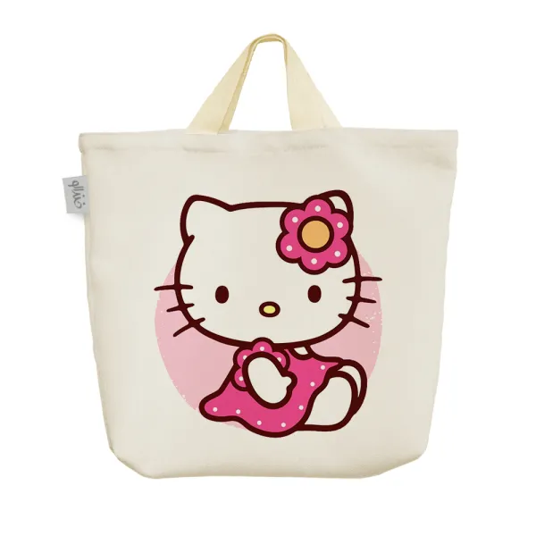 ساک خرید پارچه ای هلو کیتی محصولی کاربردیست که به کمک آن میتوان مصرف کیسه های نایلونی و پلاستیکی را کاهش داد. این ساک ها از جنس پارچه گونی بافت تولید شده و مقاومت بالایی دارند. جنس بند ها نخ پنبه است و با اتصال محکمی به بدنه ساک دوخته شده اند. چاپ ساک پارچه ای هلو کیتی بصورت دیجیتال انجام گرفته و کاملا قابل شستشو در ماشین لباسشویی و بصورت دستی می باشد. از ساک پارچه ای هلو کیتی به عنوان ساک خرید، ساک هدیه و کیف همراه برای اقلام مصرفی نیز میتوان استفاده کرد.