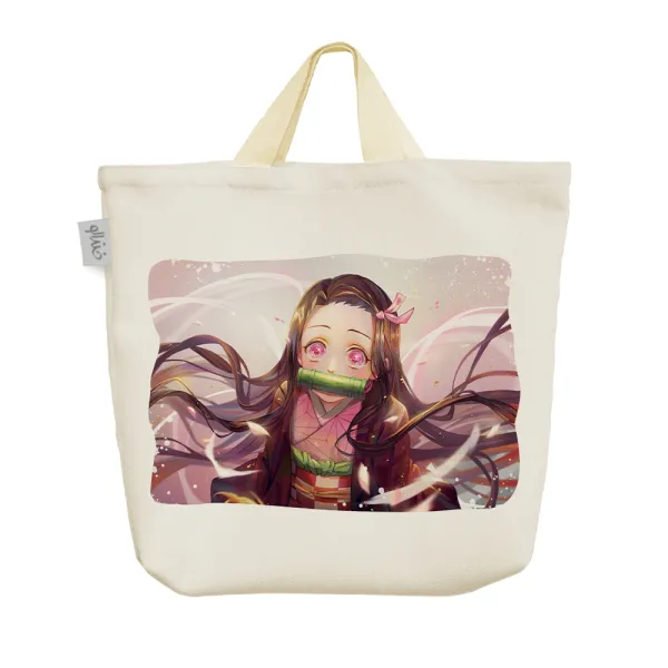 ساک خرید پارچه ای کامادو نزوکو انیمه شیطان کش محصولی کاربردیست که به کمک آن میتوان مصرف کیسه های نایلونی و پلاستیکی را کاهش داد. این ساک ها از جنس پارچه گونی بافت تولید شده و مقاومت بالایی دارند. جنس بند ها نخ پنبه است و با اتصال محکمی به بدنه ساک دوخته شده اند. چاپ ساک پارچه ای کامادو نزوکو انیمه شیطان کش بصورت دیجیتال انجام گرفته و کاملا قابل شستشو در ماشین لباسشویی و بصورت دستی می باشد. از ساک پارچه ای کامادو نزوکو انیمه شیطان کش به عنوان ساک خرید، ساک هدیه و کیف همراه برای اقلام مصرفی نیز میتوان استفاده کرد.