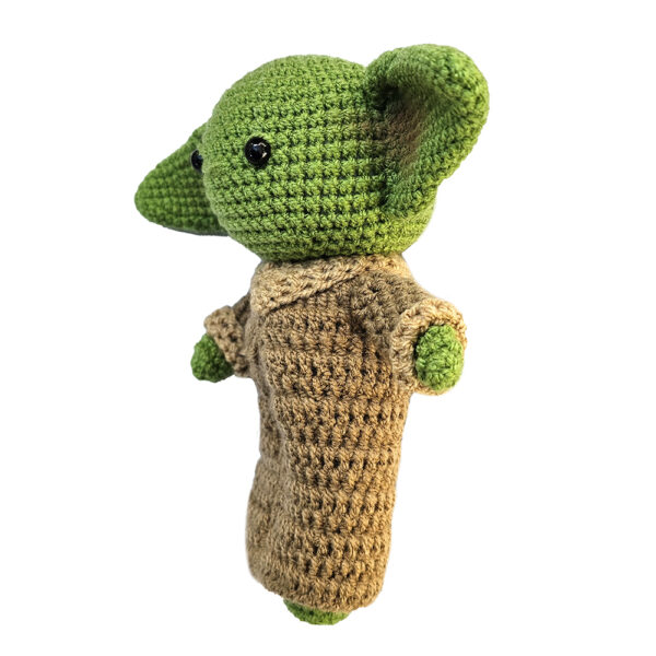 عروسک بافتنی خندالو مدل بیبی یودا (Baby Yoda) از روی شخصیت معروف انیمه بیبی یودا (Baby Yoda) بافته شده، که با توجه به بسته بندی زیبا می تواند هدیه ای مناسب باشد. این عروسک بافتنی تماما با دست و کاموای با کیفیت و مرغوب بافته شده که بافت بسیار تمیز و زیبایی دارد. همچنین درون عروسک با الیاف پر شده که آن را به عروسکی نرم و با انعطاف پذیری بالا تبدیل کرده که قابل شستشو در ماشین لباسشویی هم می باشد