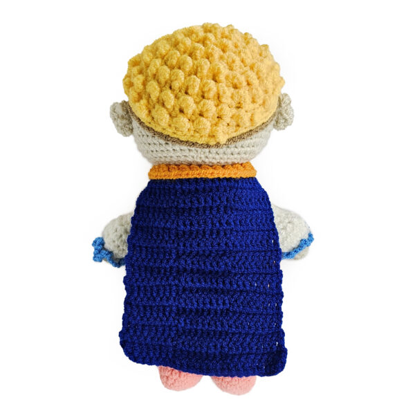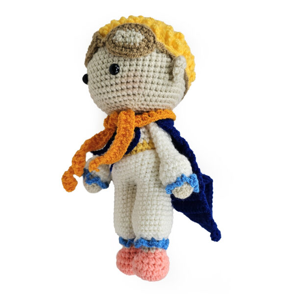 عروسک بافتنی خندالو مدل شازده کوچولو (The Little Prince) از روی شخصیت معروف انیمه شازده کوچولو (The Little Prince) بافته شده، که با توجه به بسته بندی زیبا می تواند هدیه ای مناسب باشد. این عروسک بافتنی تماما با دست و کاموای با کیفیت و مرغوب بافته شده که بافت بسیار تمیز و زیبایی دارد. همچنین درون عروسک با الیاف پر شده که آن را به عروسکی نرم و با انعطاف پذیری بالا تبدیل کرده که قابل شستشو در ماشین لباسشویی هم می باشد