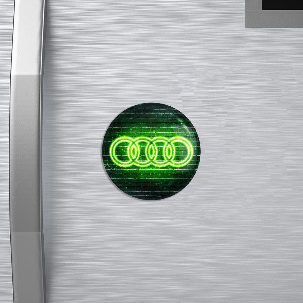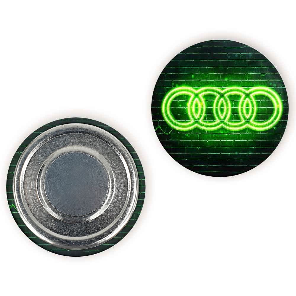 مگنت آئودی Audi خندالو با روکش سلفون مات مخملی ضدخش و قطعه پشتی فلزی تولید شده است که آهنربای اتمی بکار برده شده در محصول، بصورت مخفی تعبیه شده ودیده نمی شود. ضمن اینکه گیرایی بسیار بالایی داشته و به هیچ عنوان از روی یخچال نمی افتد.