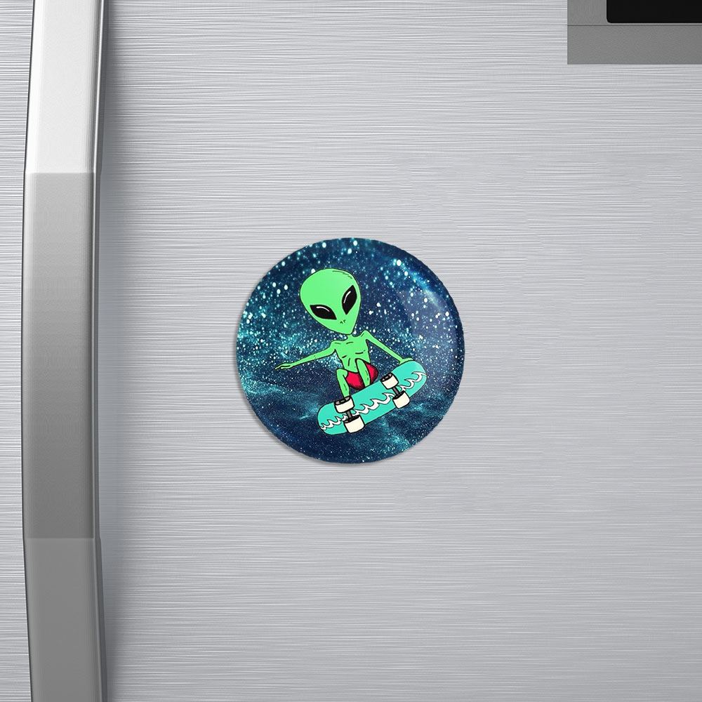 مگنت آدم فضایی خندالو با روکش سلفون مات مخملی ضدخش و قطعه پشتی فلزی تولید شده است که آهنربای اتمی بکار برده شده در محصول، بصورت مخفی تعبیه شده ودیده نمی شود. ضمن اینکه گیرایی بسیار بالایی داشته و به هیچ عنوان از روی یخچال نمی افتد.