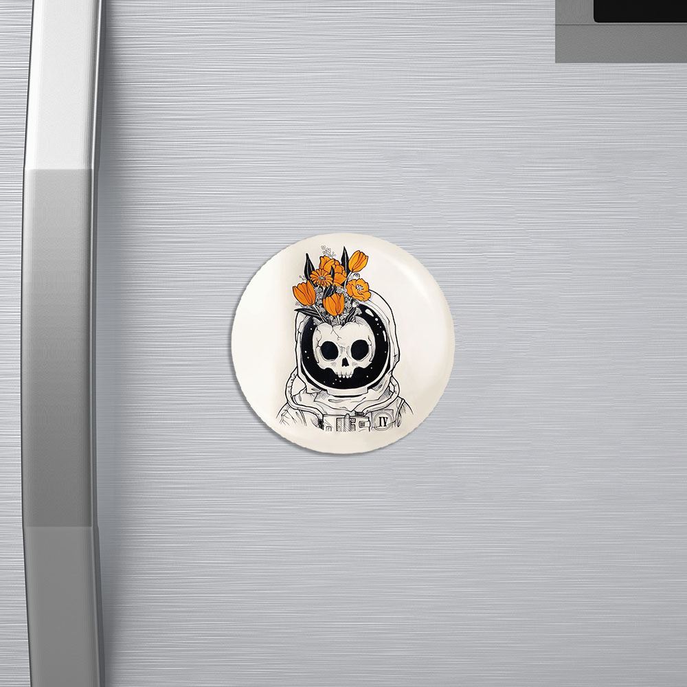 مگنت آدم فضایی خندالو با روکش سلفون مات مخملی ضدخش و قطعه پشتی فلزی تولید شده است که آهنربای اتمی بکار برده شده در محصول، بصورت مخفی تعبیه شده ودیده نمی شود. ضمن اینکه گیرایی بسیار بالایی داشته و به هیچ عنوان از روی یخچال نمی افتد.