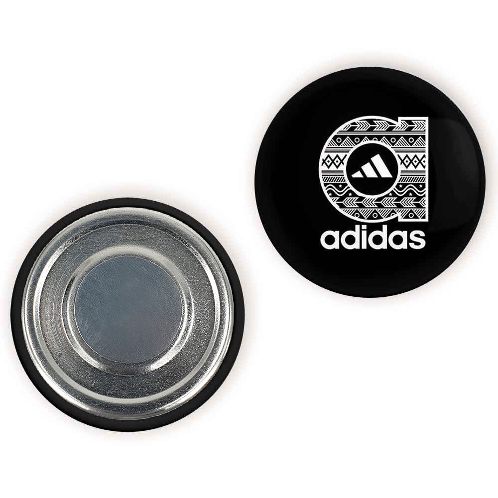 مگنت آدیداس Adidas خندالو با روکش سلفون مات مخملی ضدخش و قطعه پشتی فلزی تولید شده است که آهنربای اتمی بکار برده شده در محصول، بصورت مخفی تعبیه شده ودیده نمی شود. ضمن اینکه گیرایی بسیار بالایی داشته و به هیچ عنوان از روی یخچال نمی افتد.