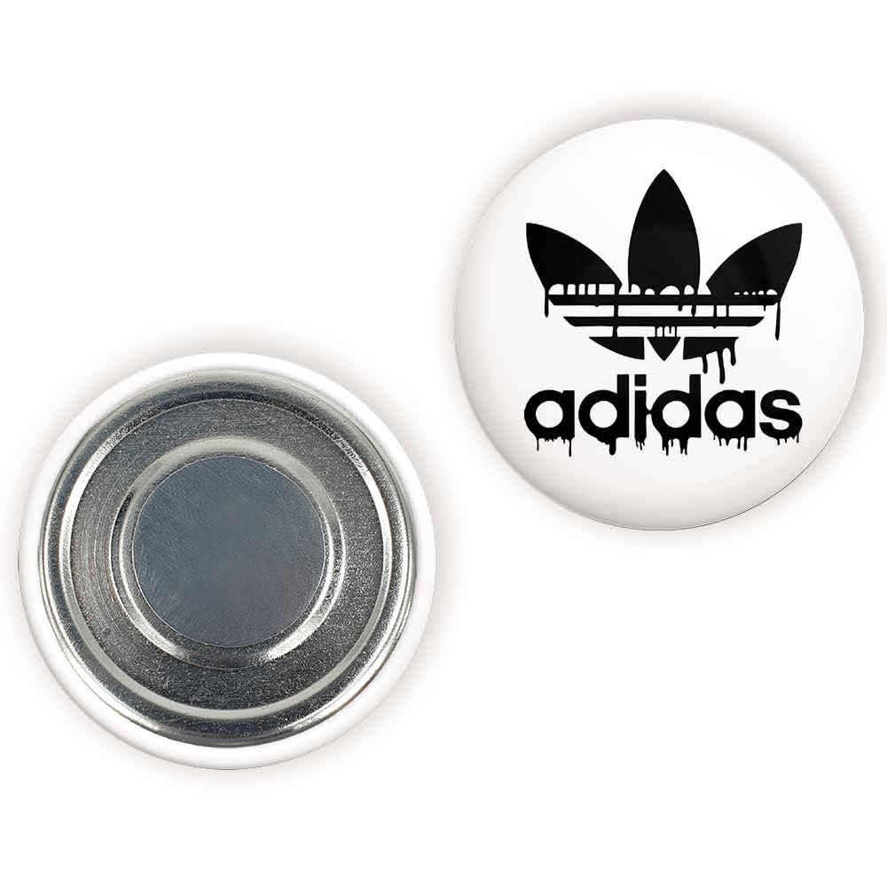 مگنت آدیداس Adidas خندالو با روکش سلفون مات مخملی ضدخش و قطعه پشتی فلزی تولید شده است که آهنربای اتمی بکار برده شده در محصول، بصورت مخفی تعبیه شده ودیده نمی شود. ضمن اینکه گیرایی بسیار بالایی داشته و به هیچ عنوان از روی یخچال نمی افتد.