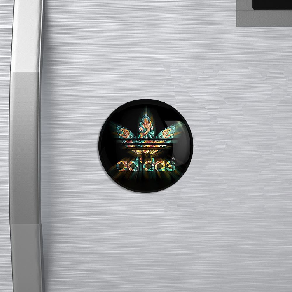 مگنت آدیداس Adidas خندالو با روکش سلفون مات مخملی ضدخش و قطعه پشتی فلزی تولید شده است که آهنربای اتمی بکار برده شده در محصول، بصورت مخفی تعبیه شده ودیده نمی شود. ضمن اینکه گیرایی بسیار بالایی داشته و به هیچ عنوان از روی یخچال نمی افتد.