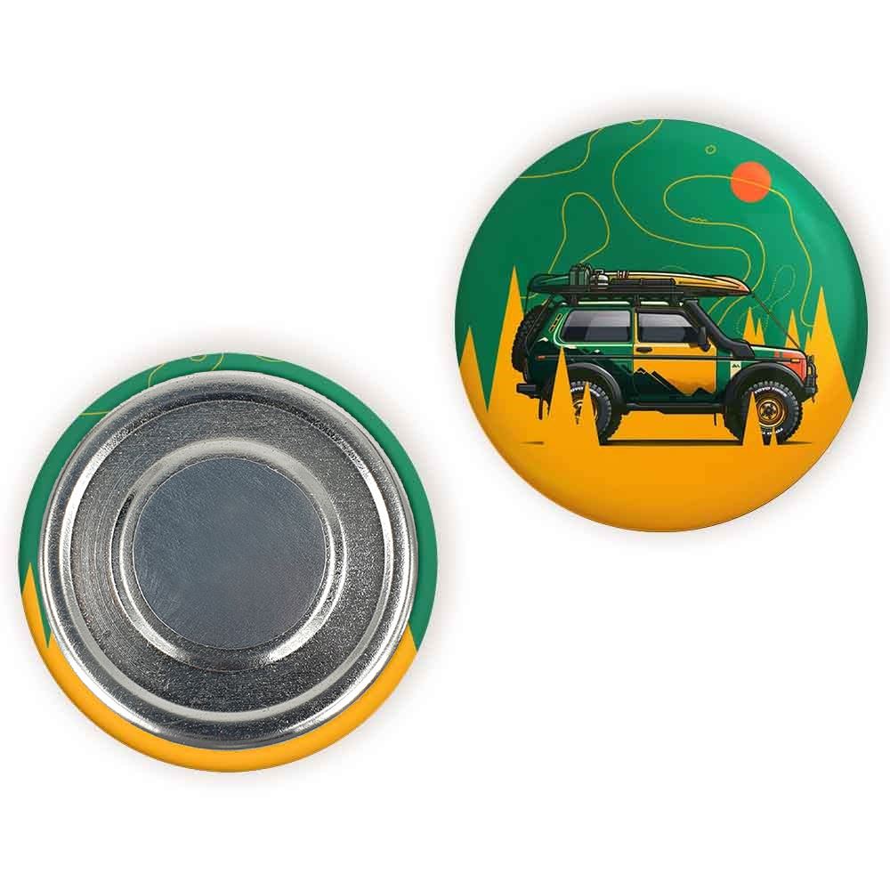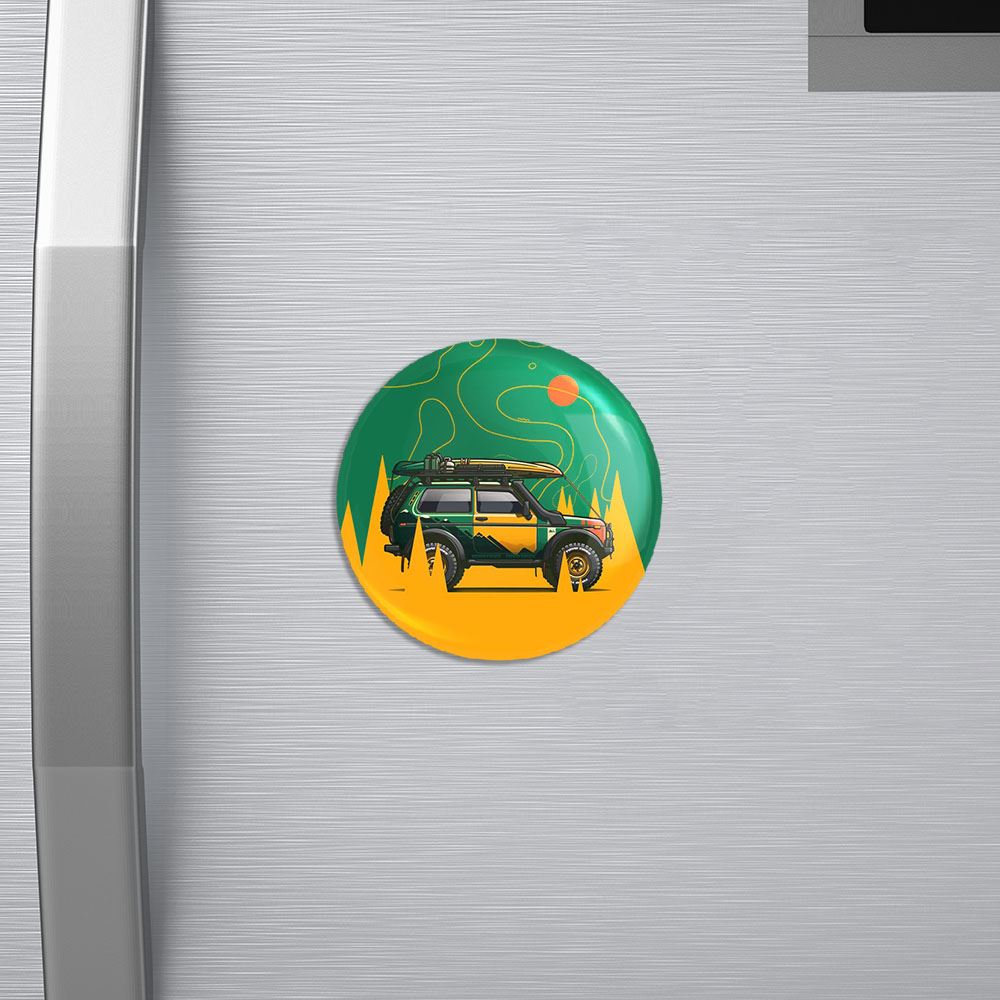 مگنت آفرود Off Road خندالو با روکش سلفون مات مخملی ضدخش و قطعه پشتی فلزی تولید شده است که آهنربای اتمی بکار برده شده در محصول، بصورت مخفی تعبیه شده ودیده نمی شود. ضمن اینکه گیرایی بسیار بالایی داشته و به هیچ عنوان از روی یخچال نمی افتد.