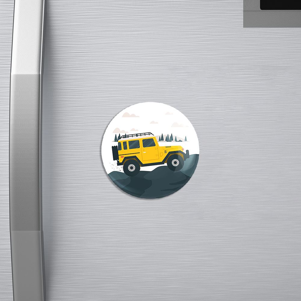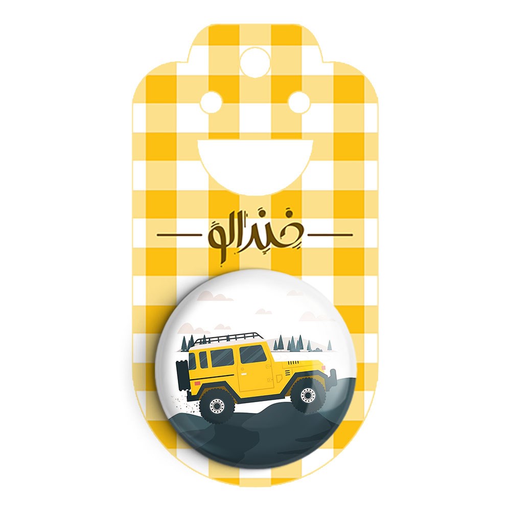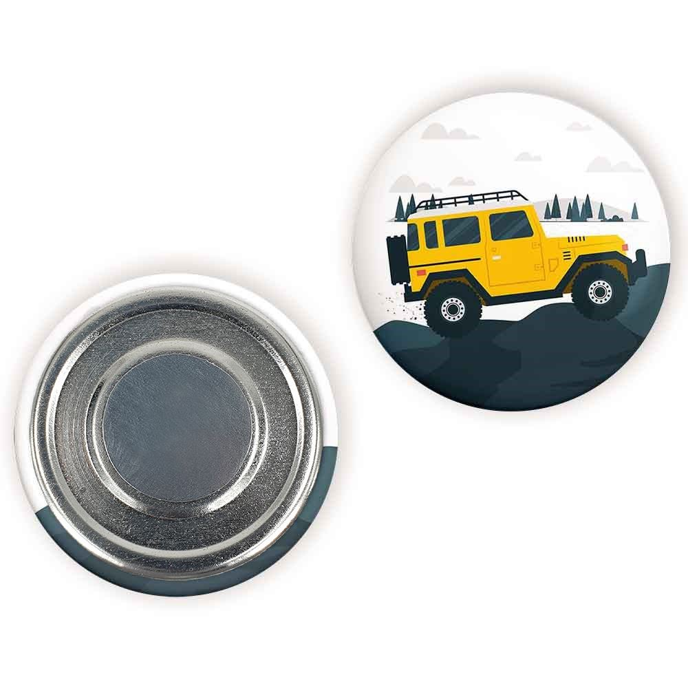 مگنت آفرود Off Road خندالو با روکش سلفون مات مخملی ضدخش و قطعه پشتی فلزی تولید شده است که آهنربای اتمی بکار برده شده در محصول، بصورت مخفی تعبیه شده ودیده نمی شود. ضمن اینکه گیرایی بسیار بالایی داشته و به هیچ عنوان از روی یخچال نمی افتد.